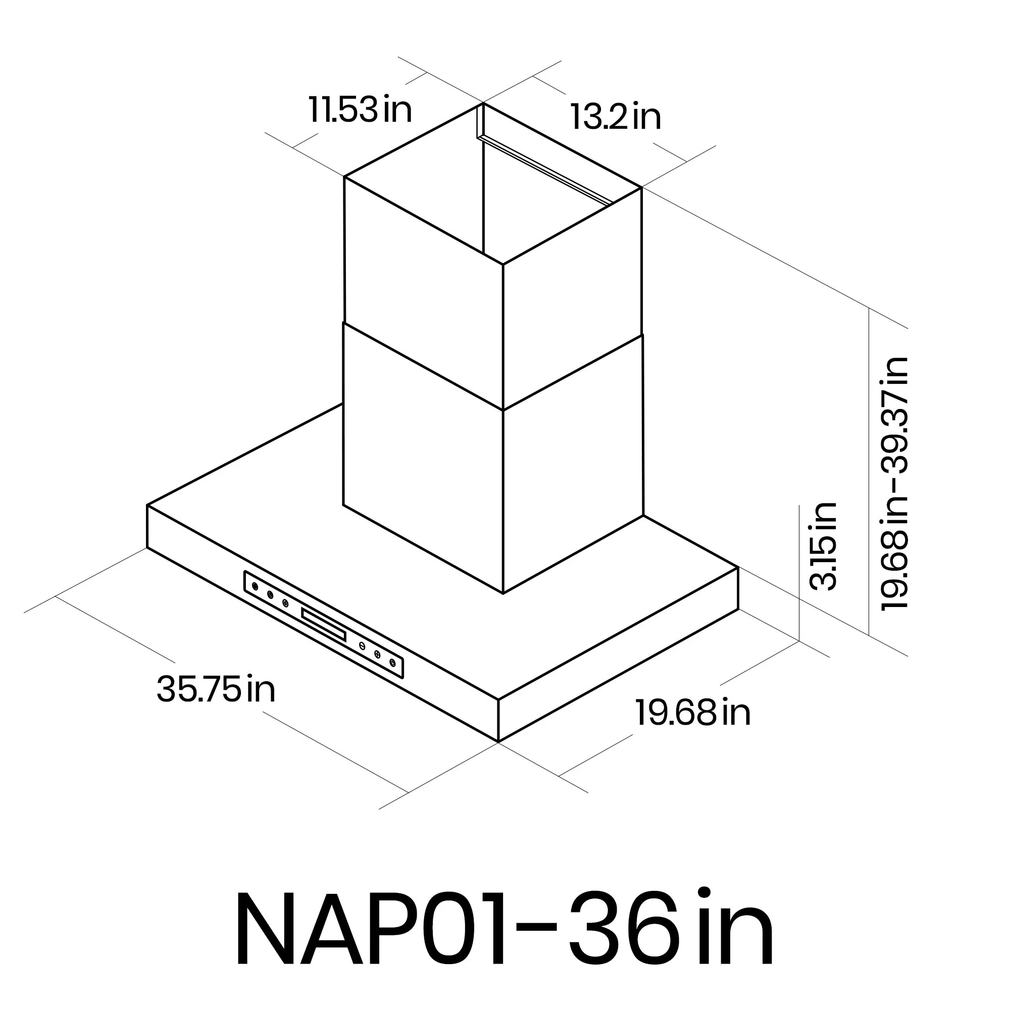 Blue Ocean 36" 900 CFM Stainless Steel Island Mount Kitchen Range Hood (RH668I)