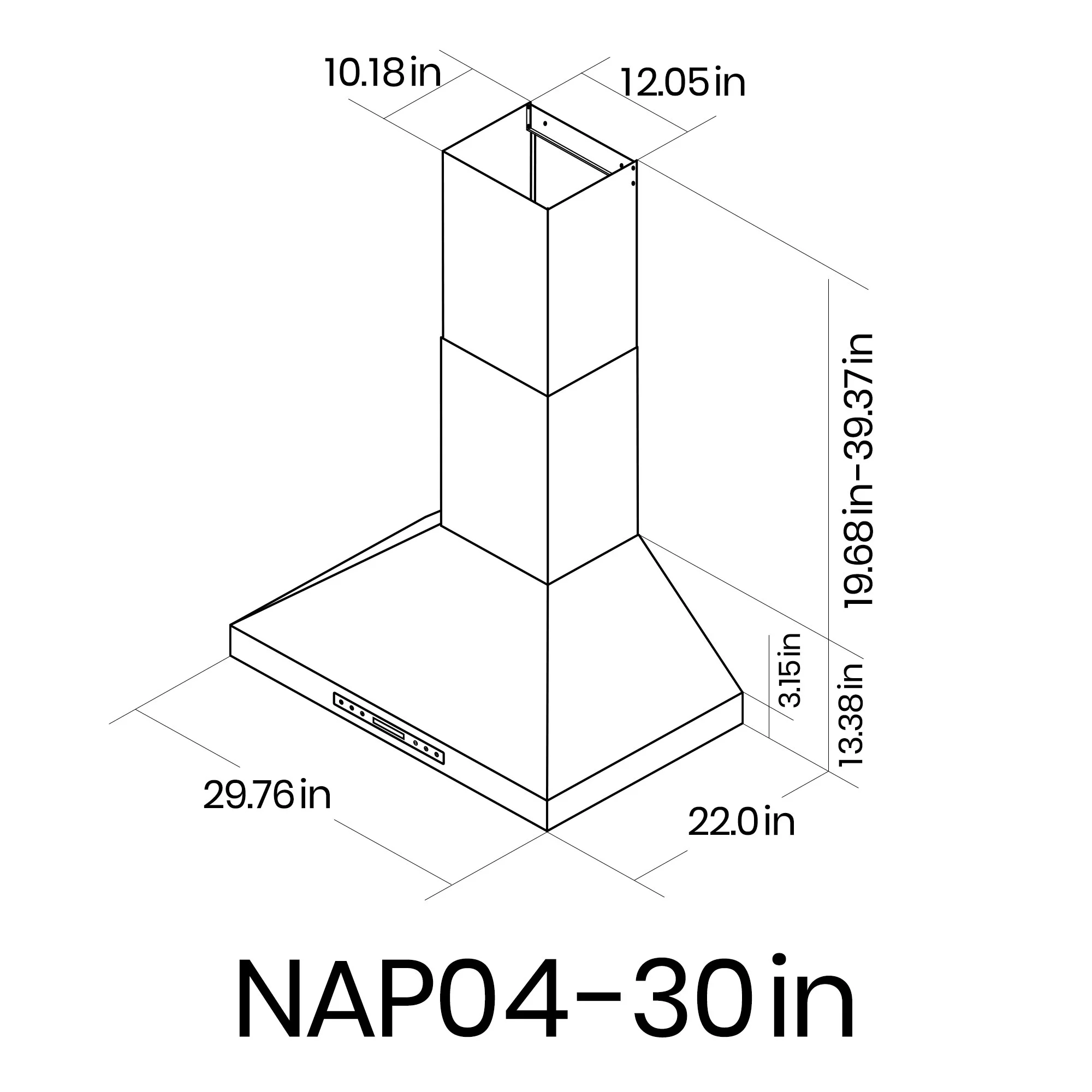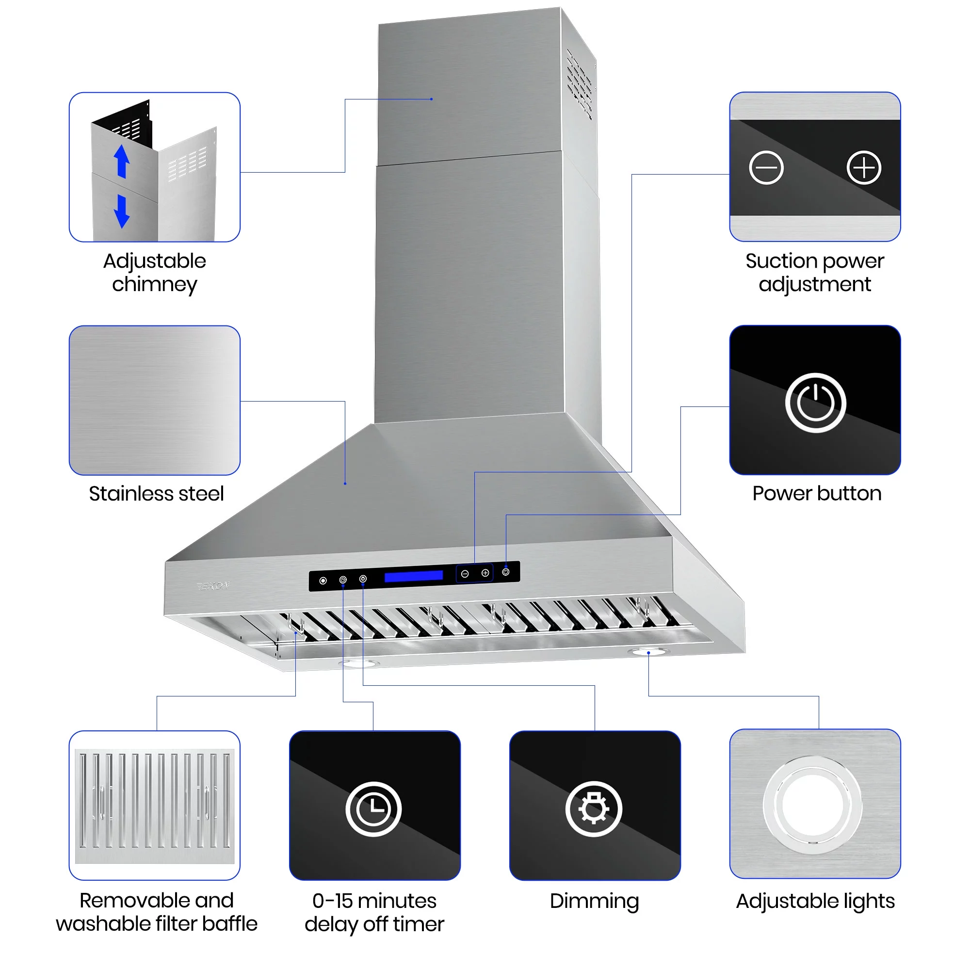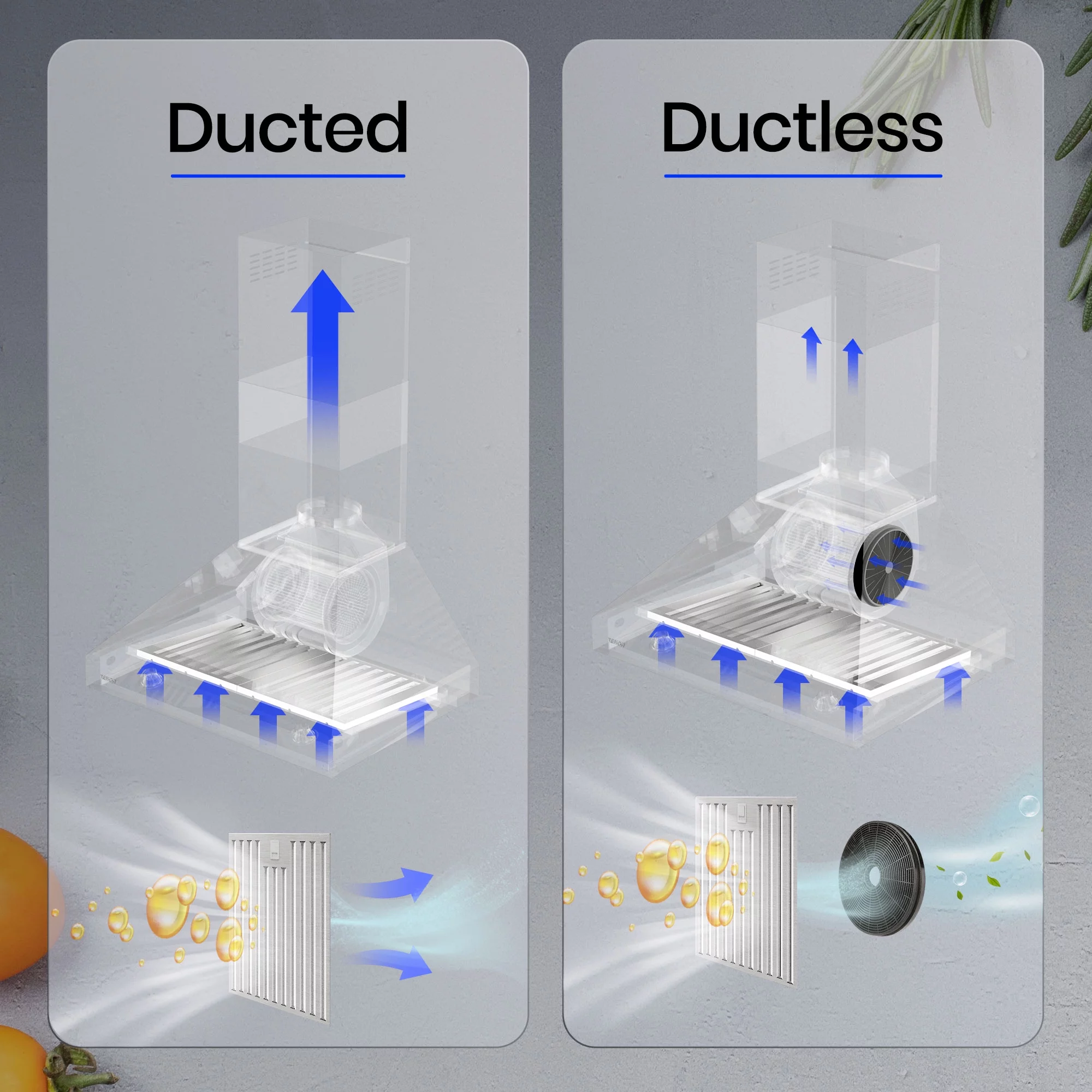 EKON KITCHEN EXPERT 30 Inches Stainless Steel Convertible Wall Mount Range Hood with Charcoal Filter and Remote Control Included NAP04-30
