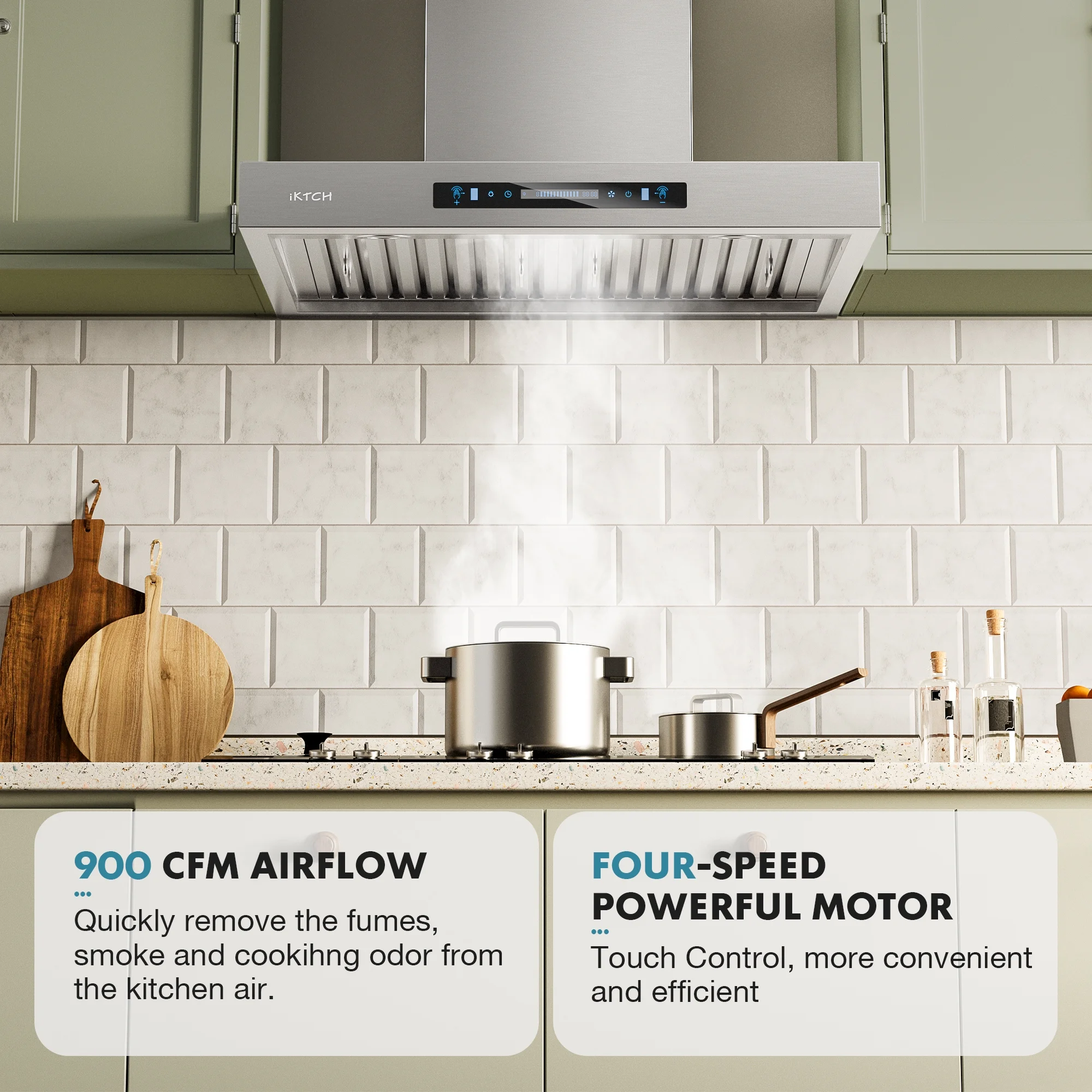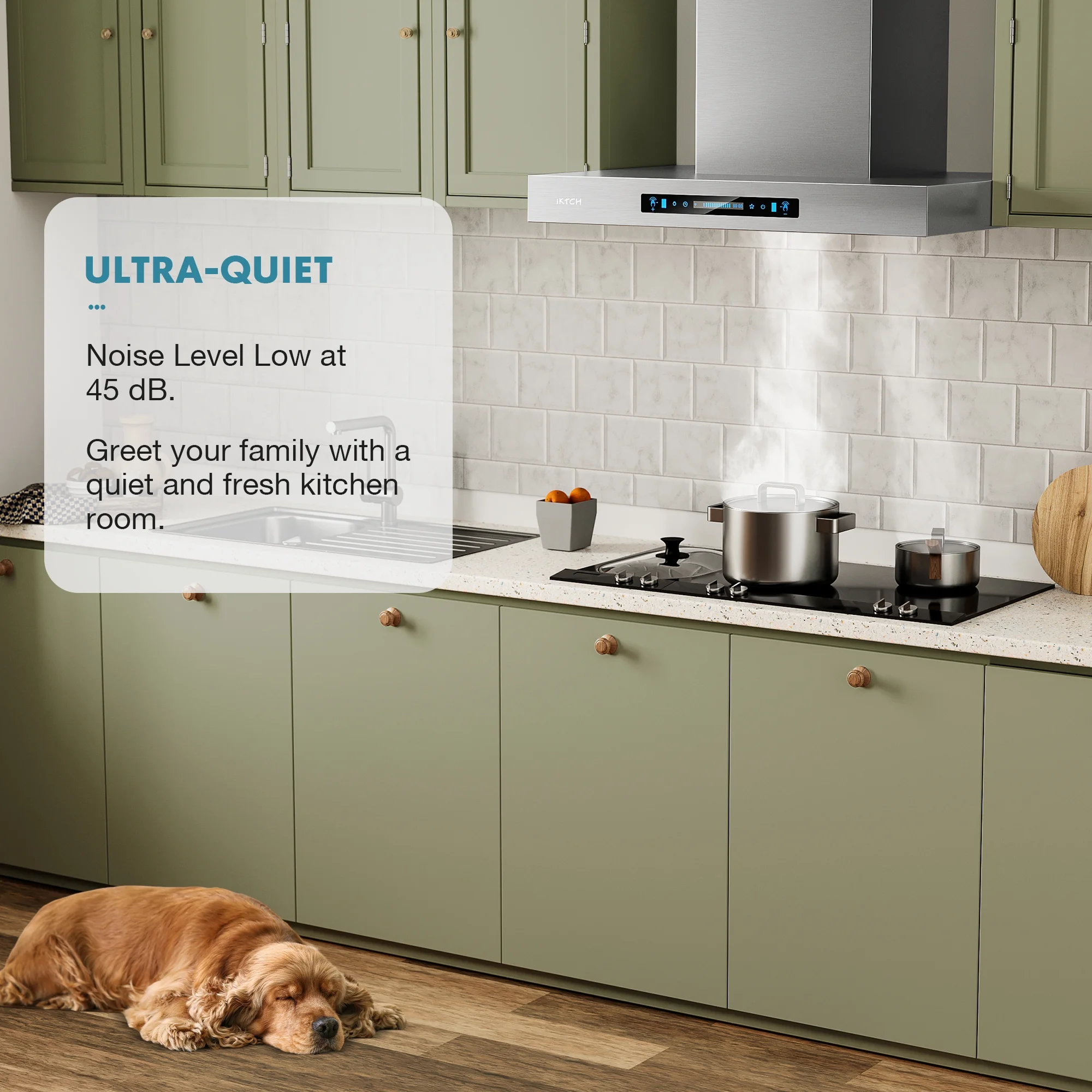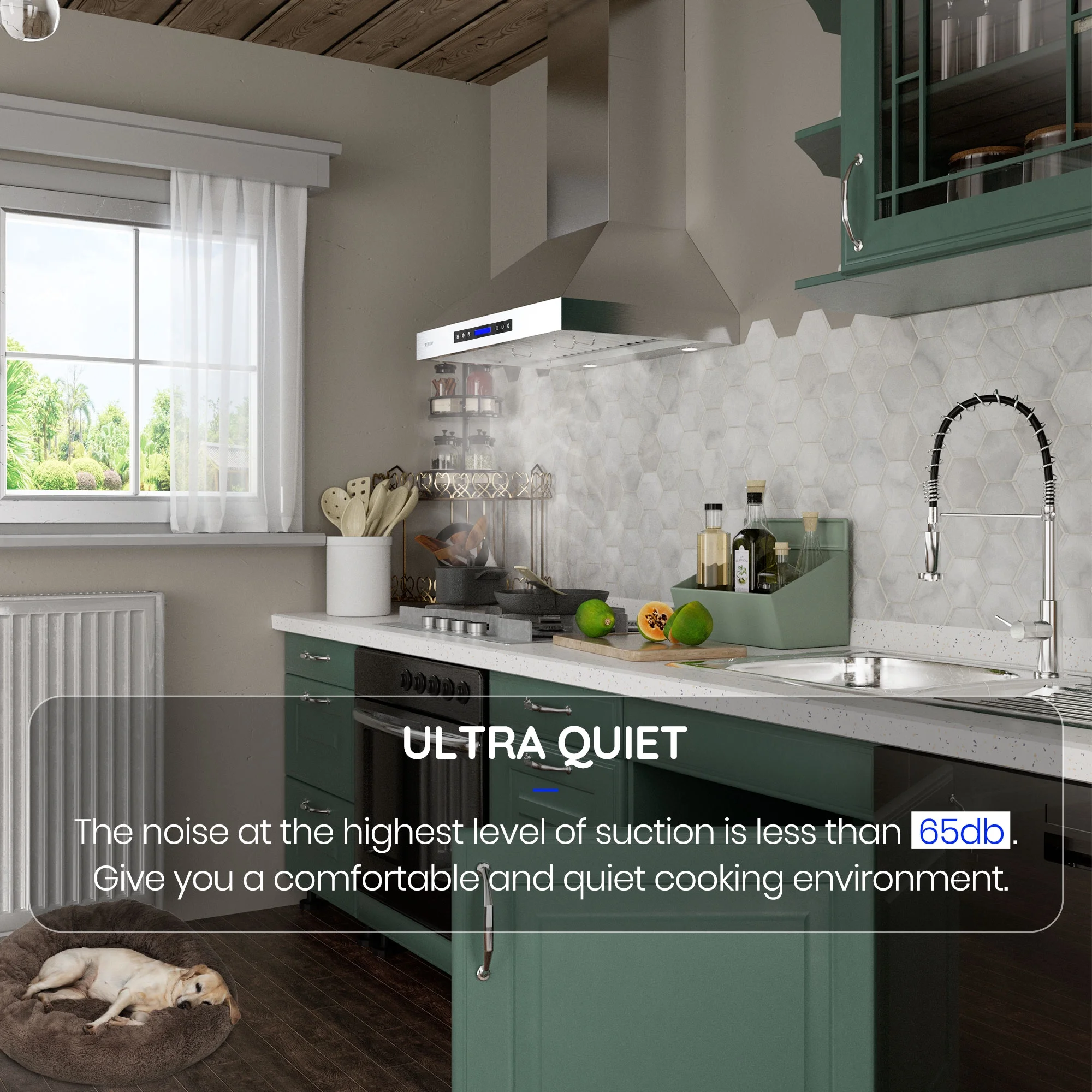 EKON KITCHEN EXPERT 30 Inches Stainless Steel Convertible Wall Mount Range Hood with Charcoal Filter and Remote Control Included NAP04-30