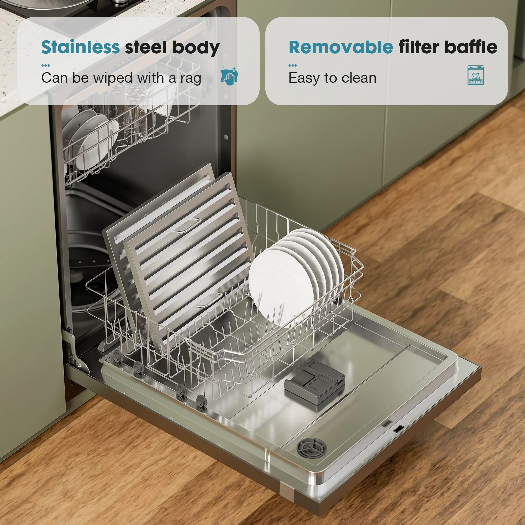 Cosmo 4 Piece Kitchen Appliance Packages with 30" Freestanding Gas Range 30" Island Mount Range Hood 24" Built-in Dishwasher & 48 Bottle Freestanding Wine Refrigerator Kitchen Appliance Bundles