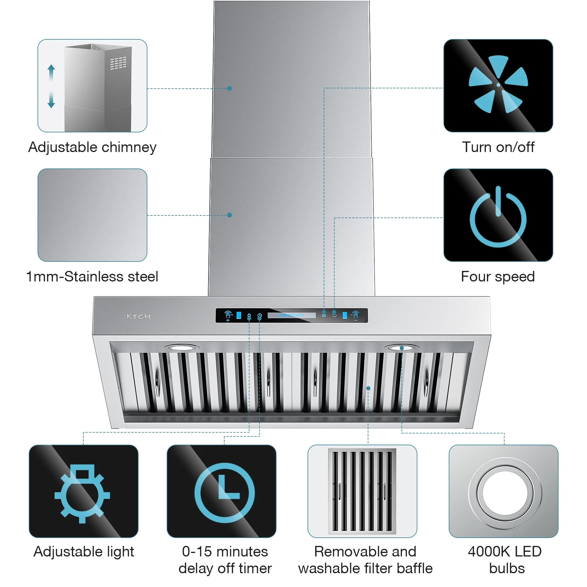 XtremeAir PX06-I48- 48'' Wide- 1600 CFM- Easy Clean swing-able baffle Filters- Stainless Steel- Island Mount Range Hood