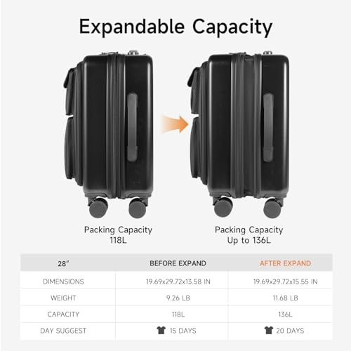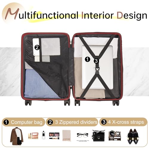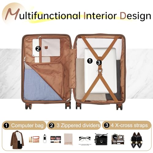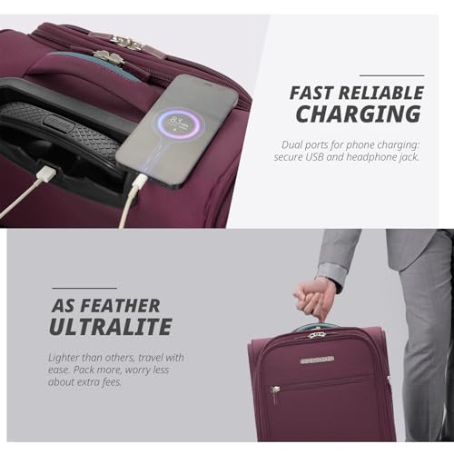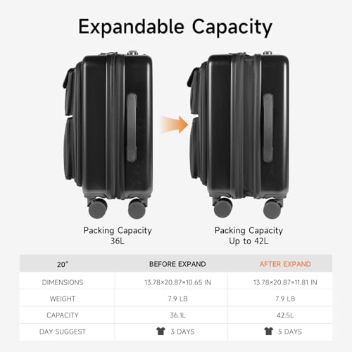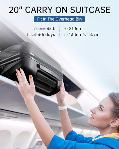 Carry On Luggage 22x14x9 Airline Approved, 20 Inch Expandable Suitcase with Softside Front PC Hardshell Back, USB Port, Spinner Wheels & TSA Lock – Lightweight 20" Travel Luggage
