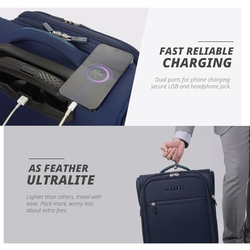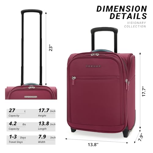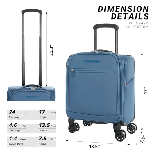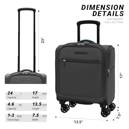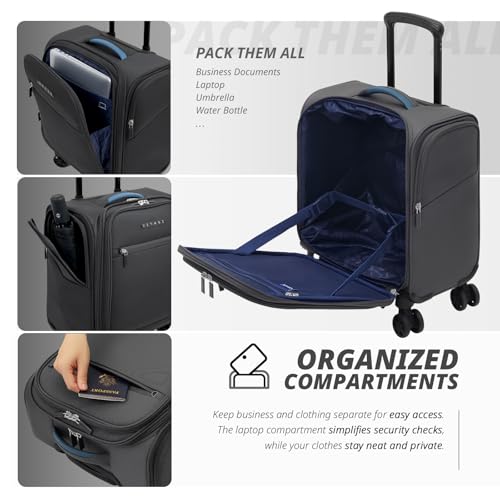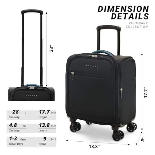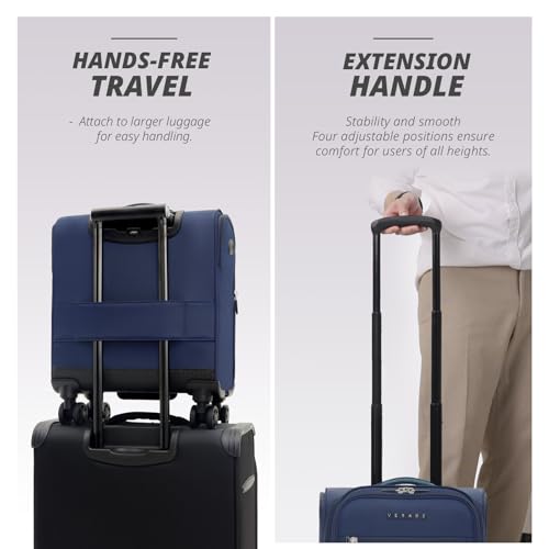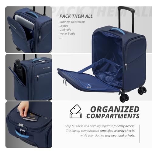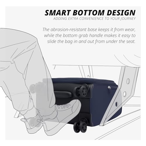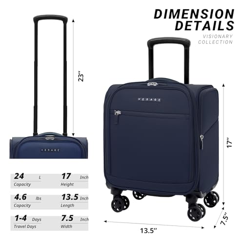 Verage Under Seat Luggage with Wheels, Softside Small Suitcase Spinner Carry On Luggage Bags for Airlines Airplanes Short Trip Men Women (Navy, 14-Inch Underseat)