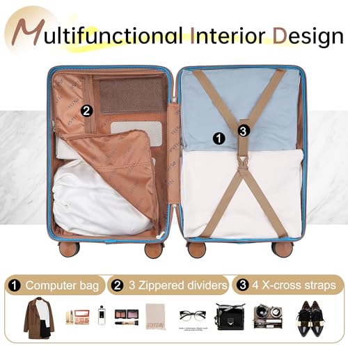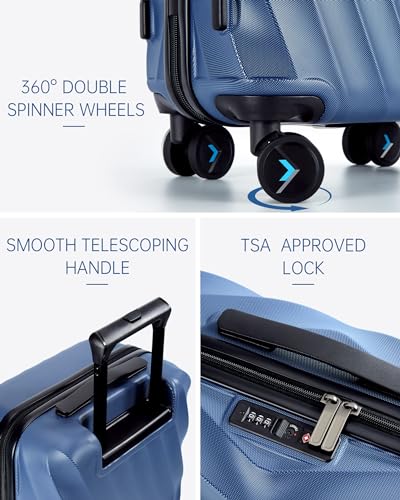 ABS Luggage Suitcase, Spinner Hardshell Lightweight, Stylish & Durable Suitcase with 360° Wheels for Smooth Travel, Perfect for Carry-On, Ideal for Business, Vacations & Weekend Getaways Blue (20inch)