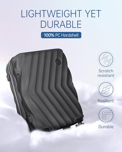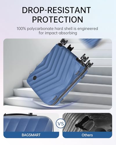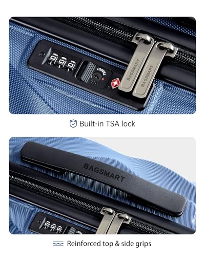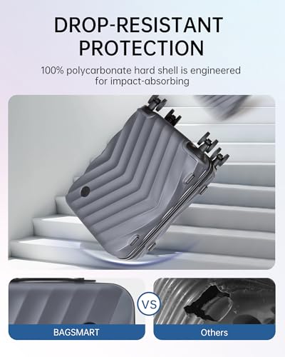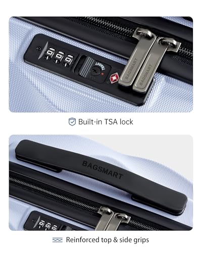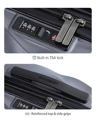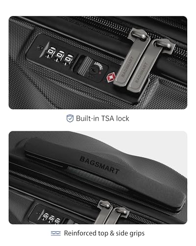 BAGSMART Carry On Luggage, PC Hardside Suitcase 22x14x9 Airline Approved, 20 Inch Travel Carry-on Luggage with Spinner Wheels, Lightweight Rolling Suitcases for Men Women,Black