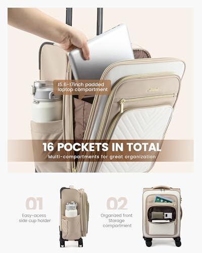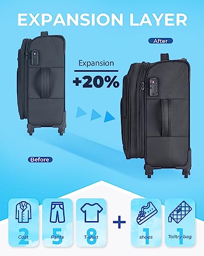LOVEVOOK Carry On Luggage 22x14x9 Airline Approved,20 Inch Carry On Suitcases with Wheels,Softside Rolling Suitcase with TSA Lock for Women Men,Lightweight Travel luggage