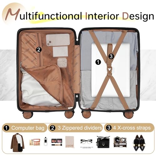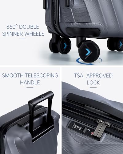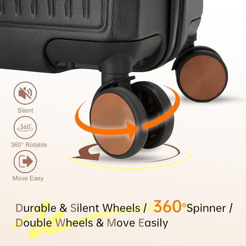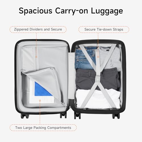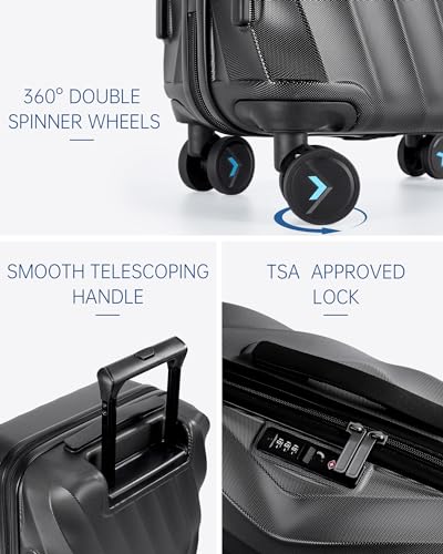 Carry on Luggage with Spinner Wheels, 22x14x9 Airline Approved Carry-on Suitcase, Small Hardside Luggage with TSA Lock,Hard Shell Suitcase,Hard Case for Travel (Black, 20-Inch)