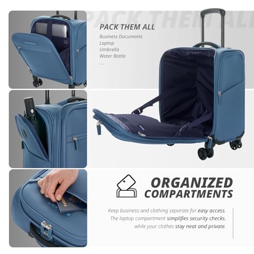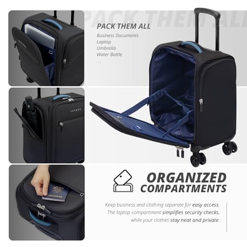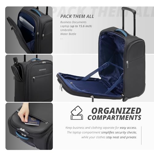 Coolife Underseat Carry On Luggage Softside Lightweight Rolling Travel Bag Spinner Suitcase