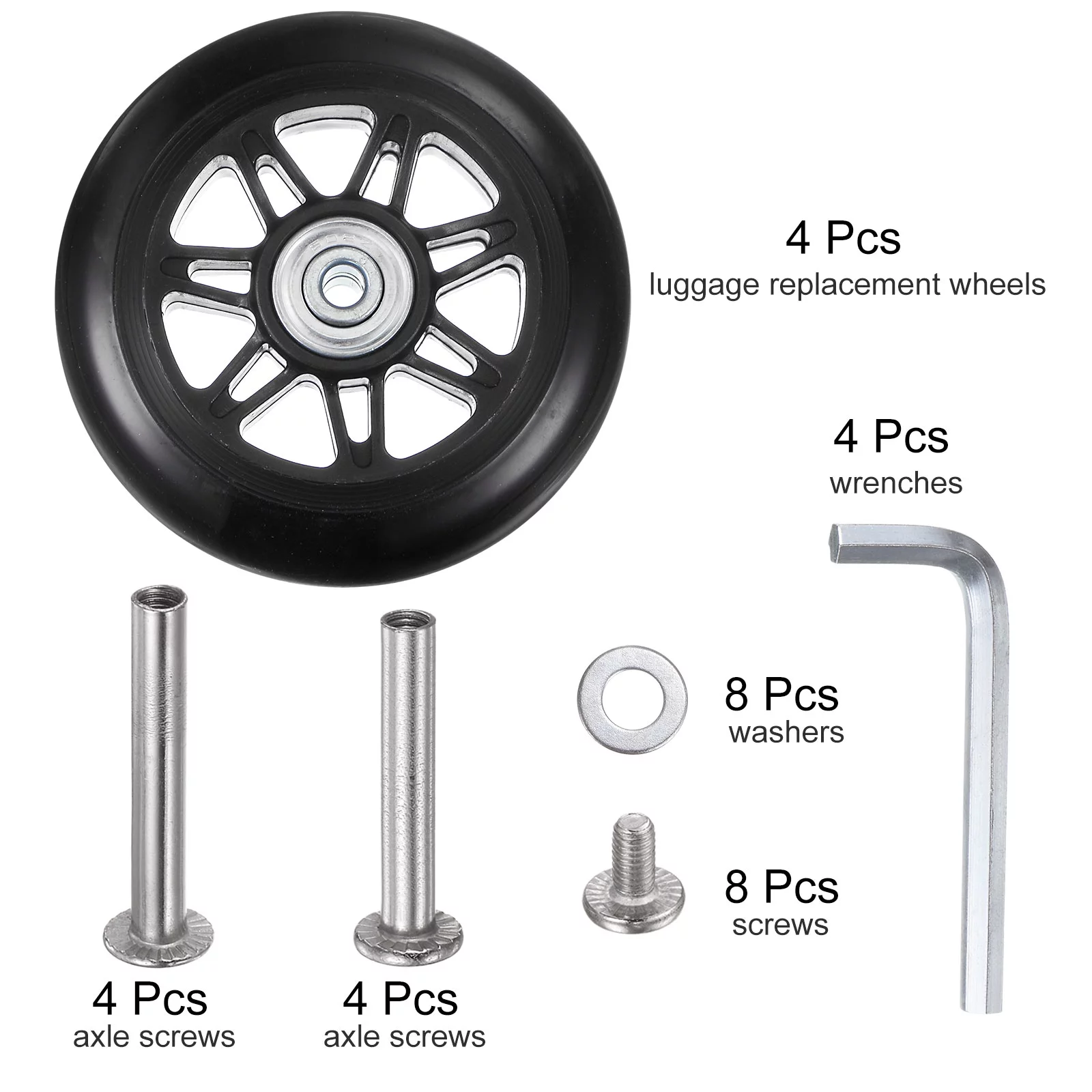 Uxcell Replacement Luggage Wheels 64x24mm Suitcase Wheel Repair Kits 4 PU Bearing Wheels for Trolley Bag, Inline Skate