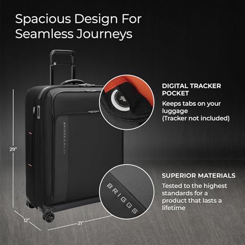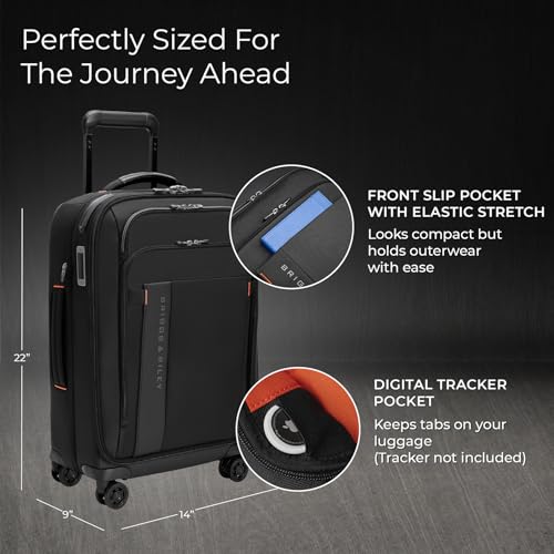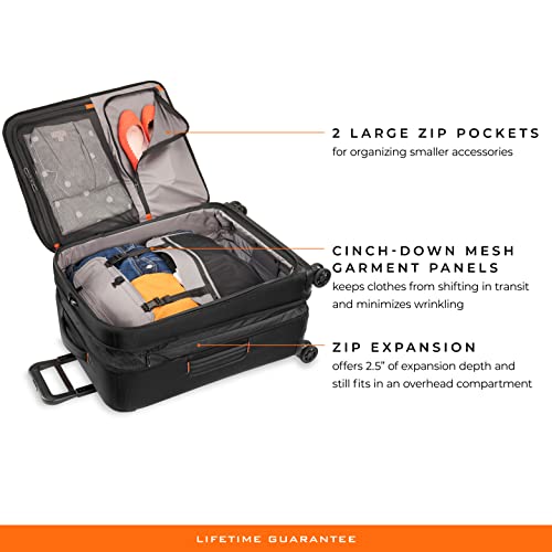 Briggs & Riley Domestic 22" Carry On Expandable Spinner - Luggage for Travel, Suitcases with Wheels, Softside Rolling Bag for Men & Women, Self-Repairing Zipper - ZDX Collection, Black