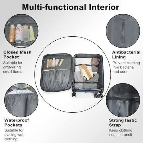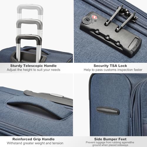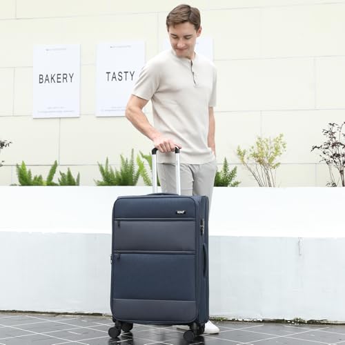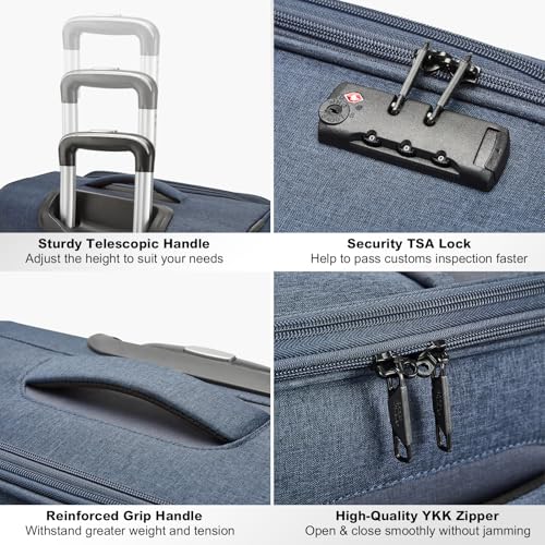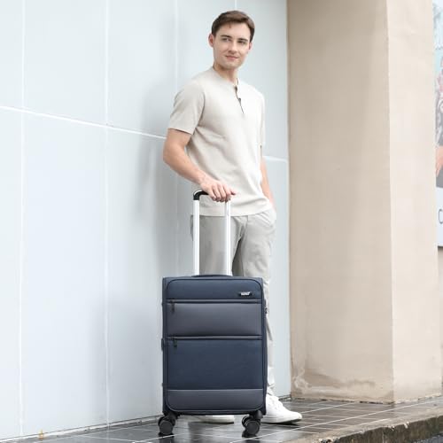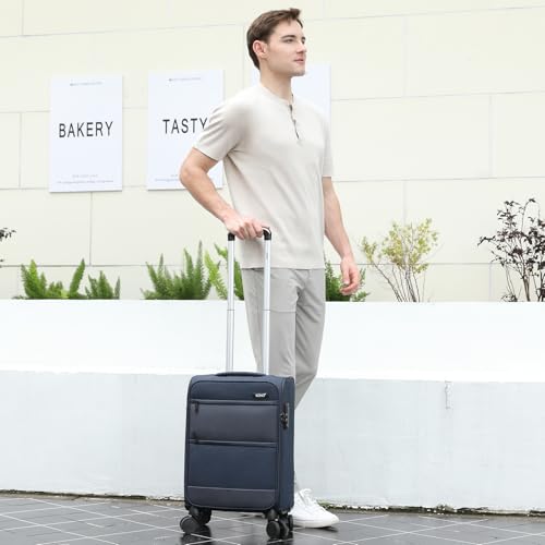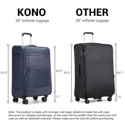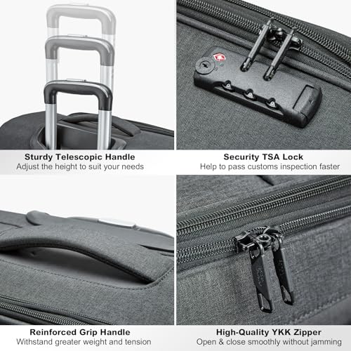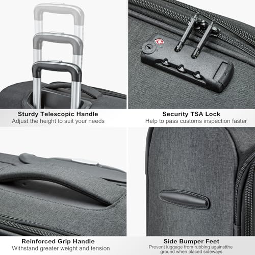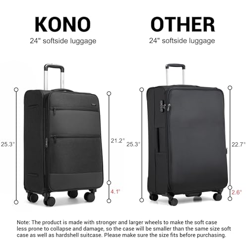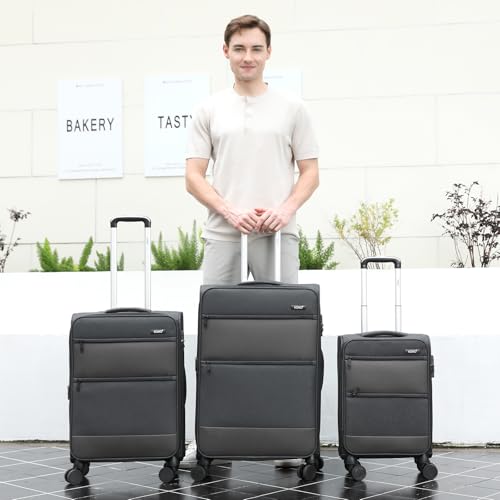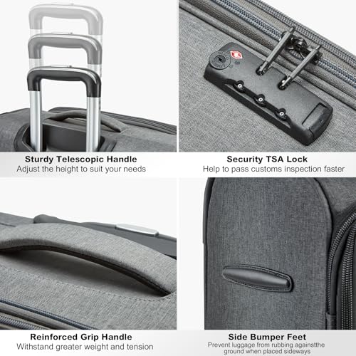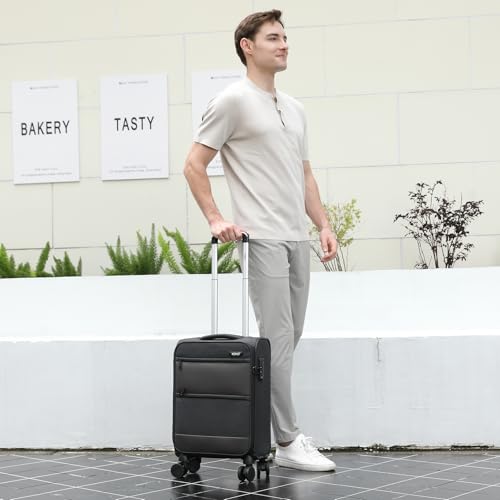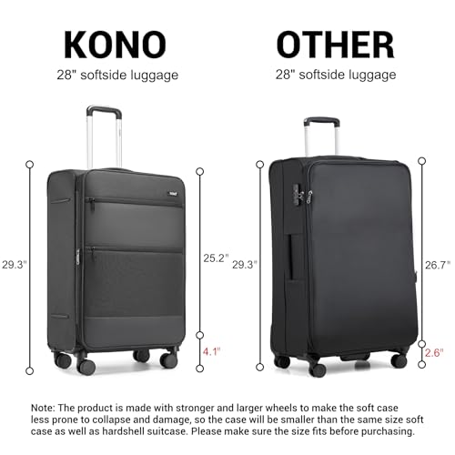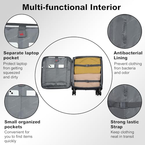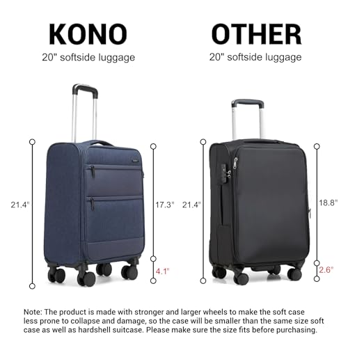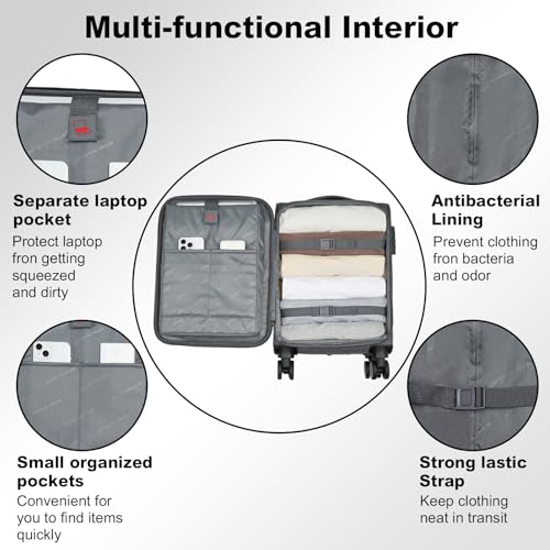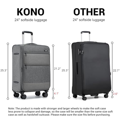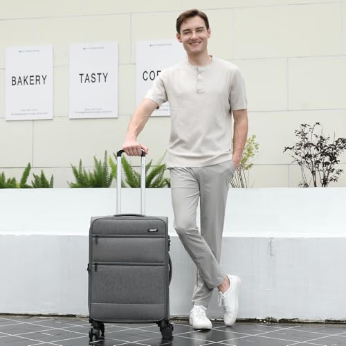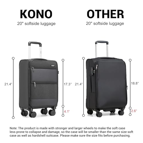 Kono 20 Inch Softside Carry On Luggage Airline Approved 20 Inch Spinner Wheels Lightweight Waterproof Suitcase with TSA Lock for Business Travel (Small, Grey)