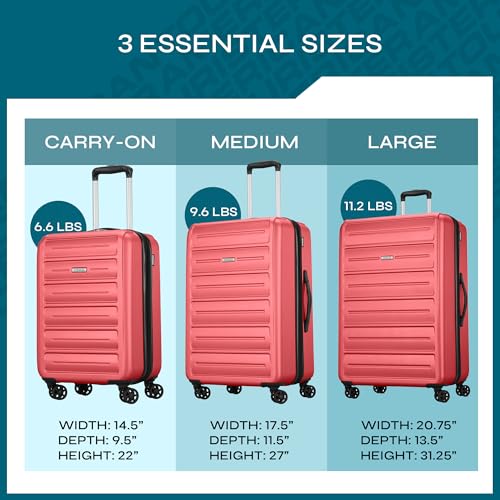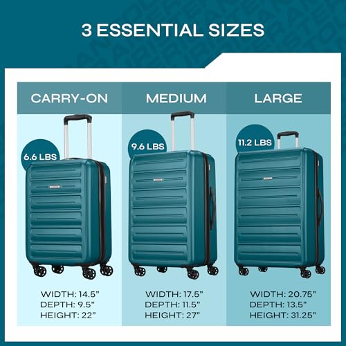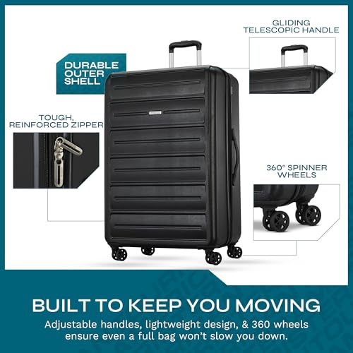 Westridge Hardshell Luggage Set - 3 Piece Set - 20" Carry-On, 24” & 28” Checked Luggage Set with 360° Spinner Wheels - Expandable Suitcases for Extended Travel - Durable ABS Shell - Black