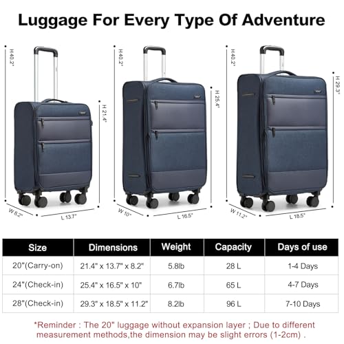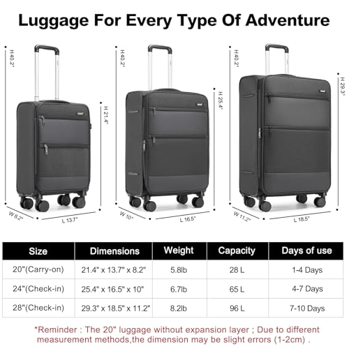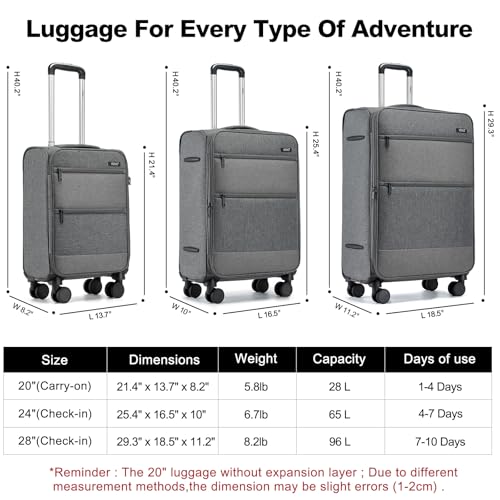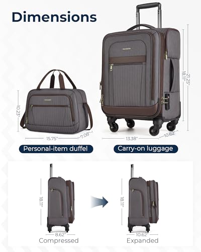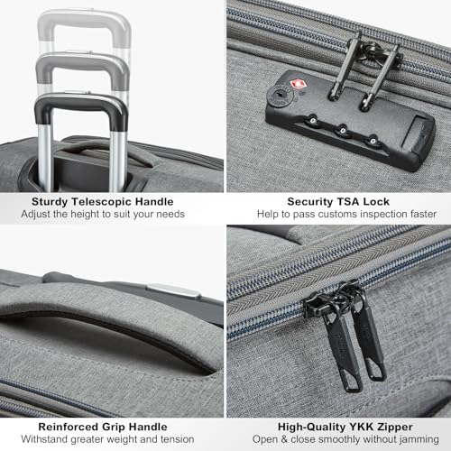 BAGSMART Carry-On Luggage Airline Approved, 20 inch Expandable Suitcase with Duffel bag, Softside Lightweight Suitcases with Spinner Wheels, Durable Travel Luggage, Carry-On Gray