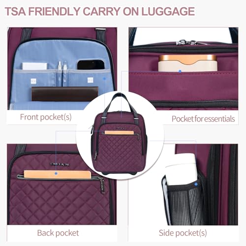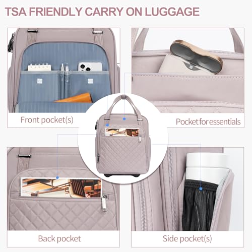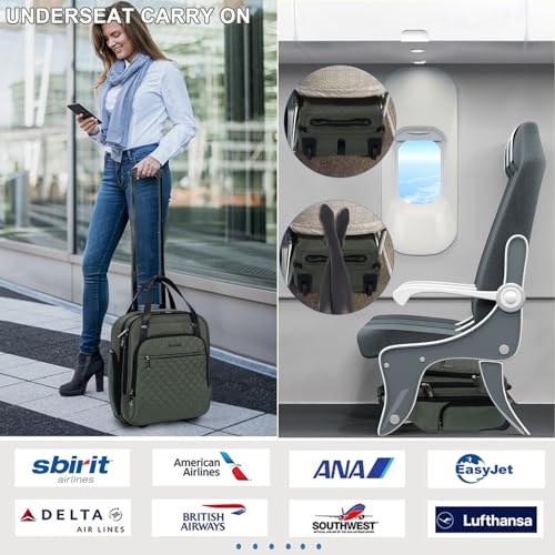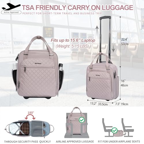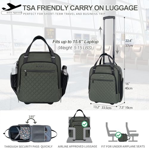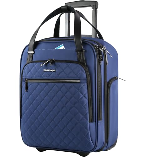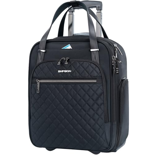 EMPSIGN Underseat Carry On Wheeled - 16" Carry on Bag with Wheels Multi-functional Lightweight Rolling Bag Overnight Weekender Small Suitcase for Women Men Travel Business, Black