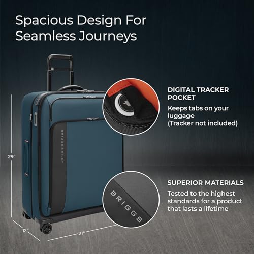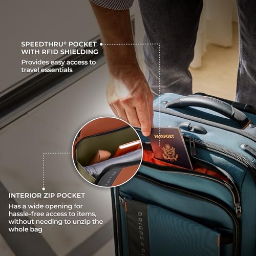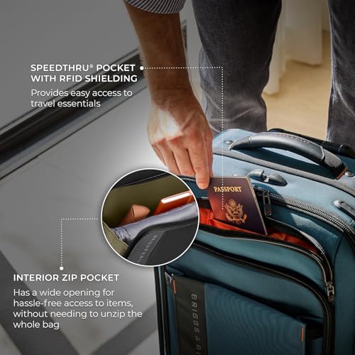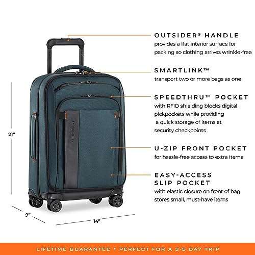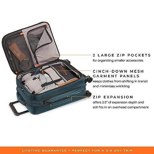 Briggs & Riley Domestic 22" Carry On Expandable Spinner - Luggage for Travel, Suitcases with Wheels, Softside Rolling Bag for Men & Women, Self-Repairing Zipper - ZDX Collection, Hunter