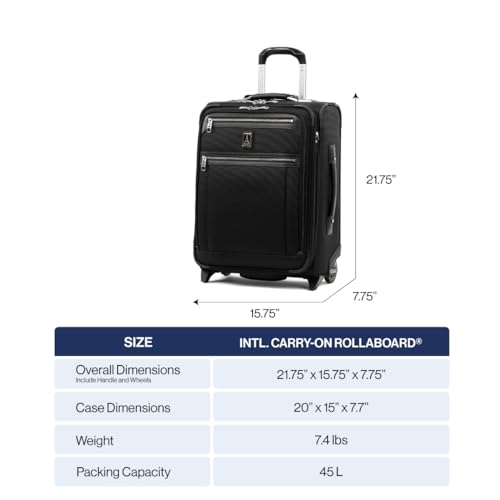 Travelpro Platinum Elite Softside Expandable Carry on Luggage, 2 Wheel Upright Suitcase, USB Port, Men and Women, International, Shadow Black, Carry On 20-Inch