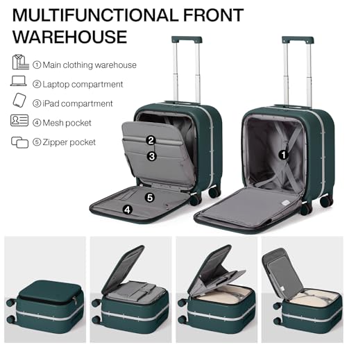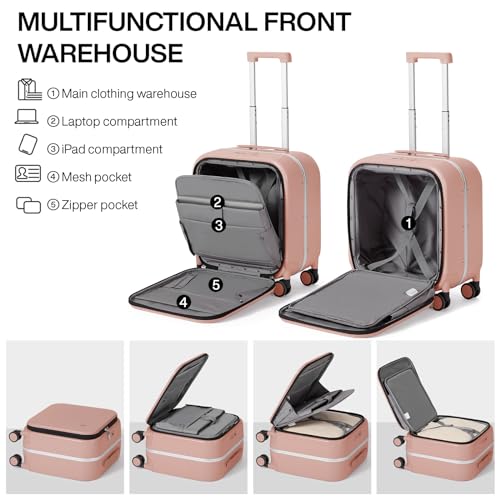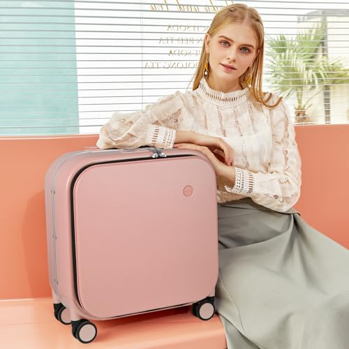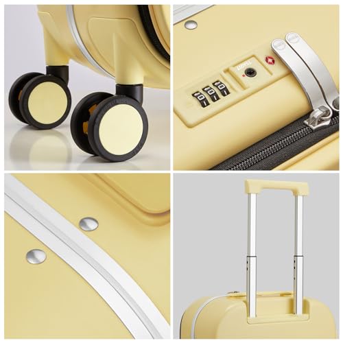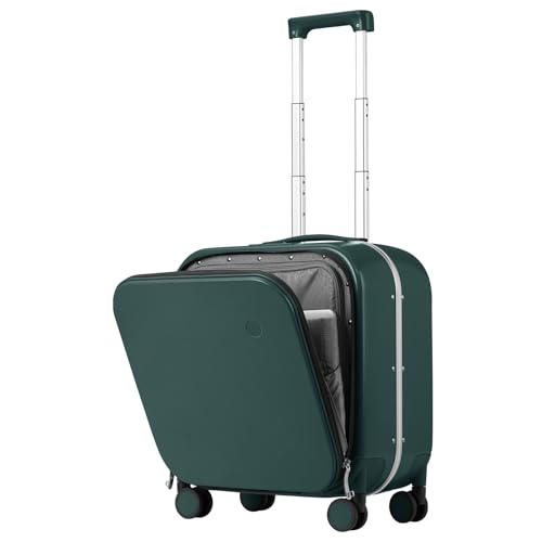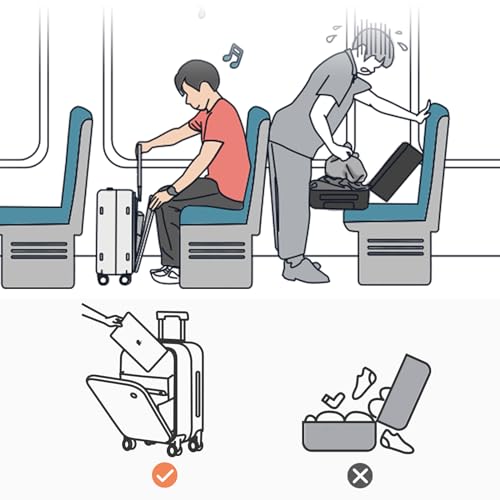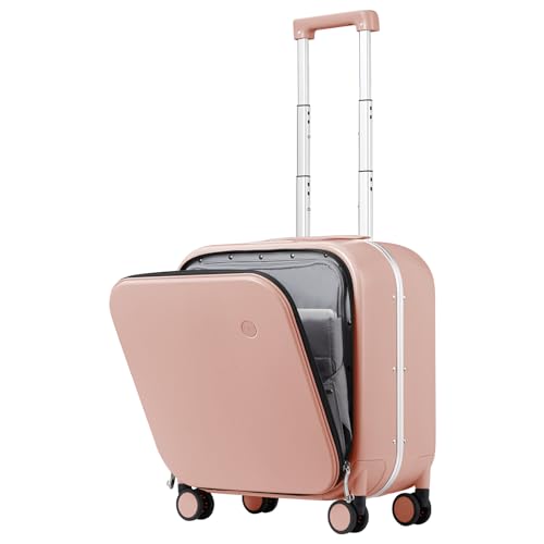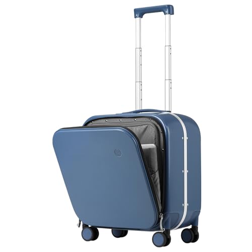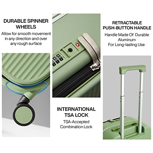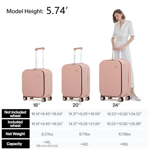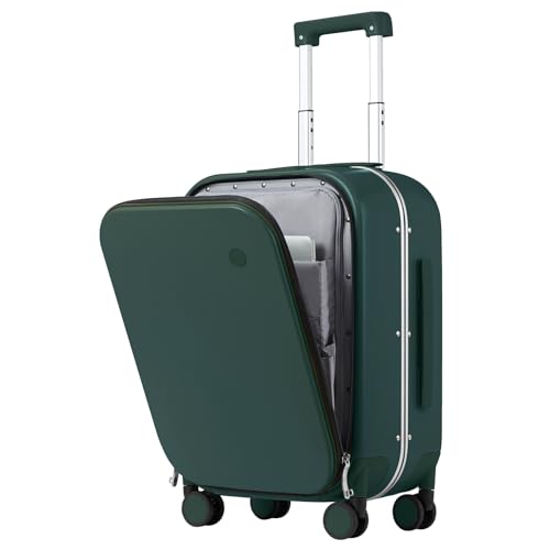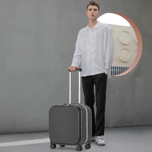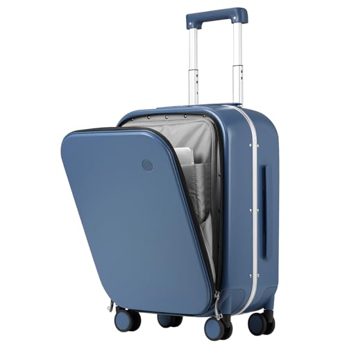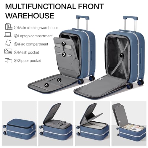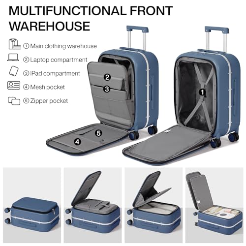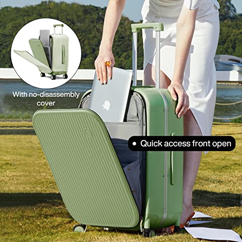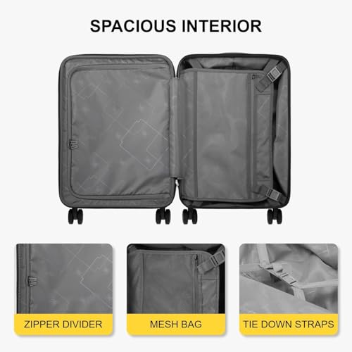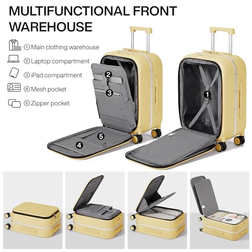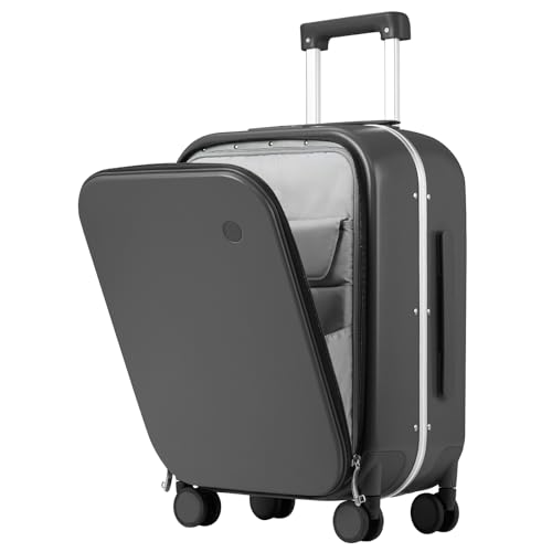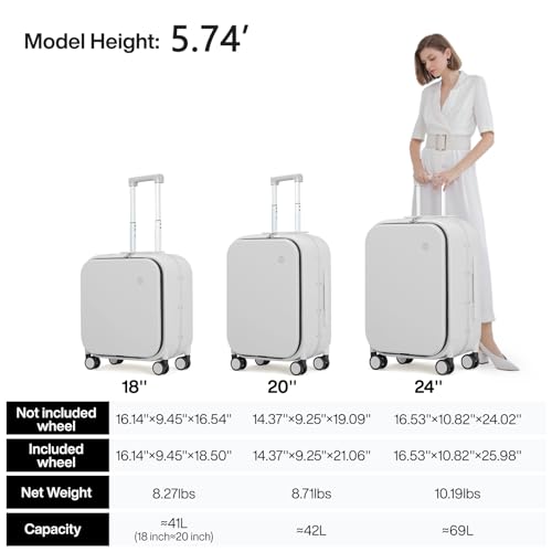 mixi Carry On Luggage, 20'' Suitcase with Front Laptop Pocket, Travel Rolling Luggage Aluminum Frame PC Hardside with Spinner Wheels & TSA Lock and Cover - Smoke White