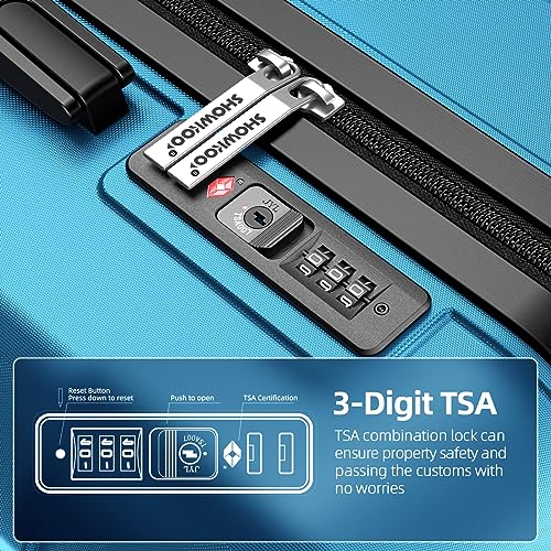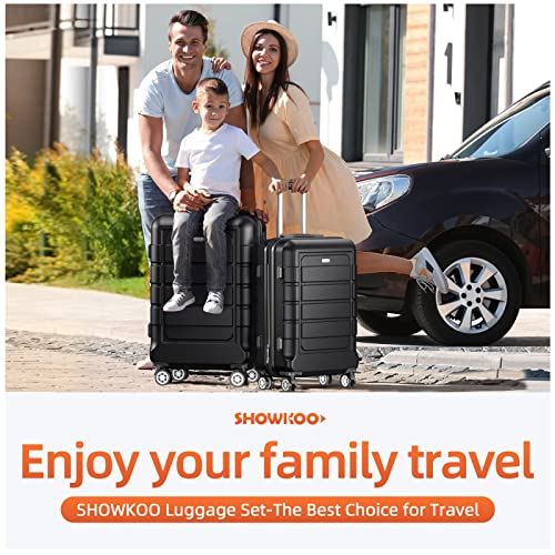 SHOWKOO Luggage Sets Expandable PC+ABS Durable Suitcase Double Wheels TSA Lock Black