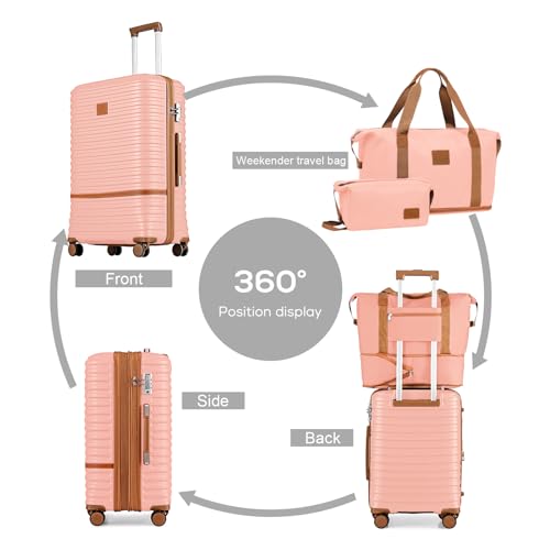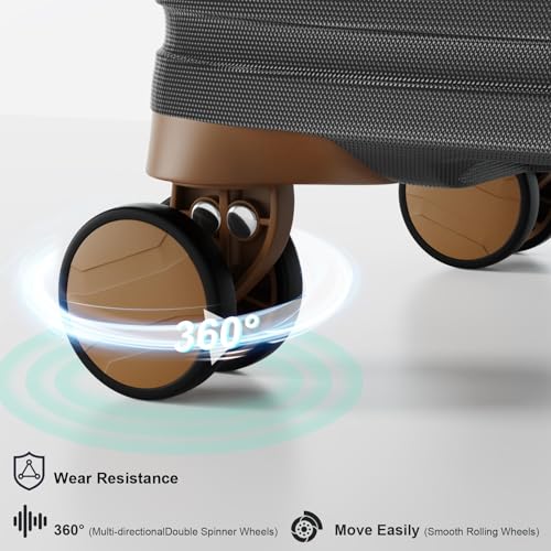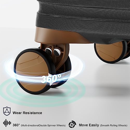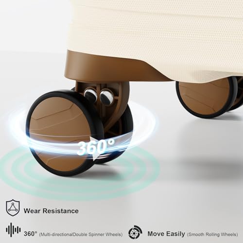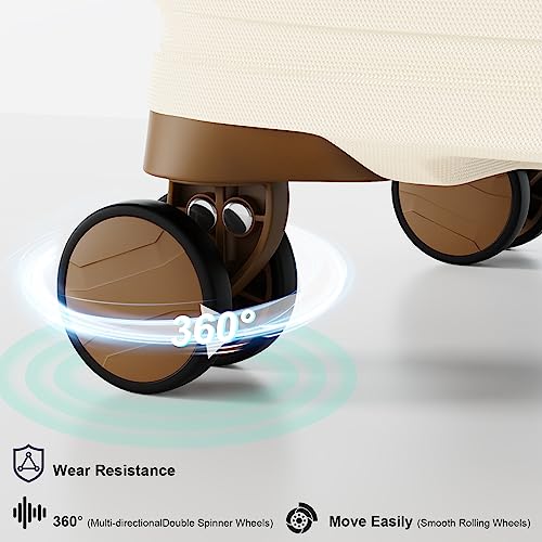 Joyway Carry On Luggage 20 Inch Expandable Suitcase with Spinner Wheel, 4 Piece Hard Shell Luggage Set with TSA Lock(White brown)