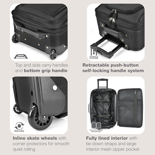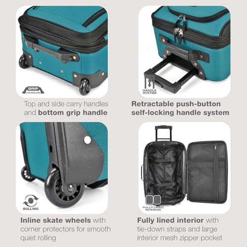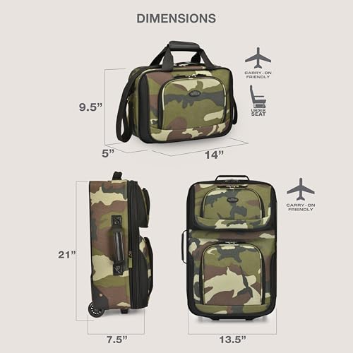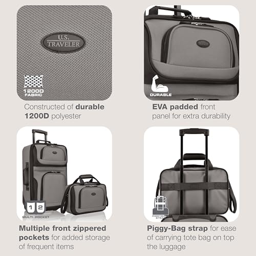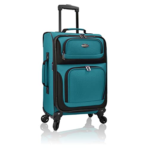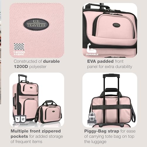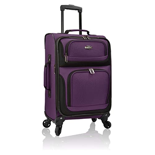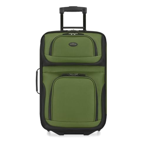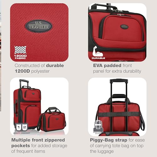 U.S. Traveler Rio Fabric Expandable Carry-on Luggage, Rolling Suitcase, Orange, 2 Wheel Set