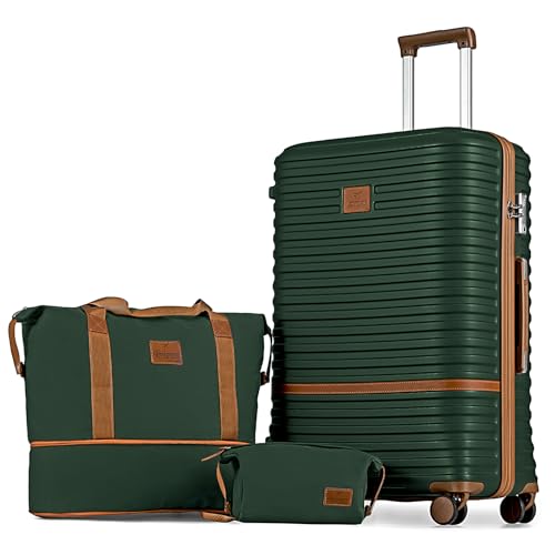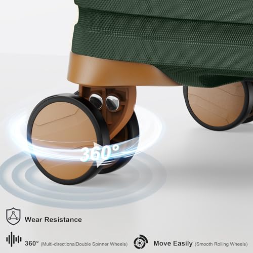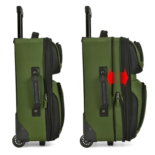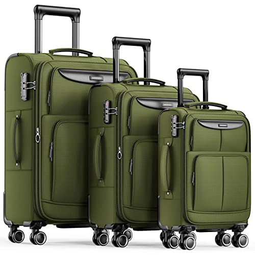 SHOWKOO Luggage Sets 3 Piece Softside Expandable Lightweight Durable Suitcase Sets Double Spinner Wheels TSA Lock Armygreen (20in/24in/28in)