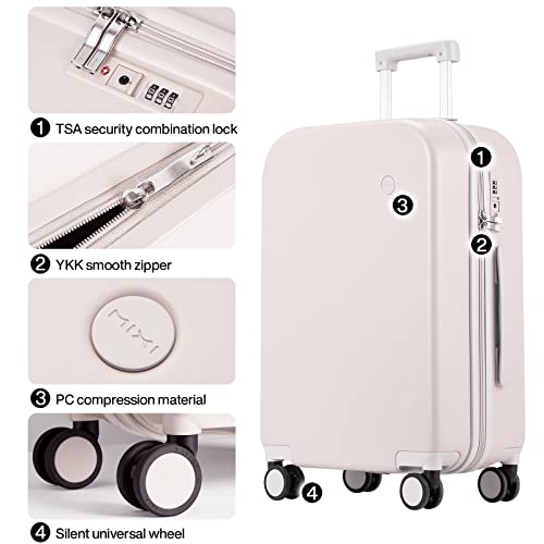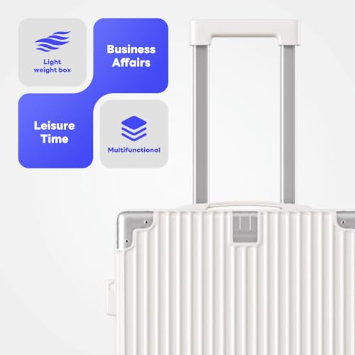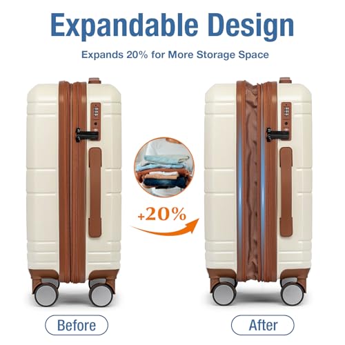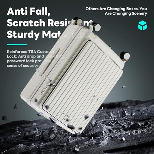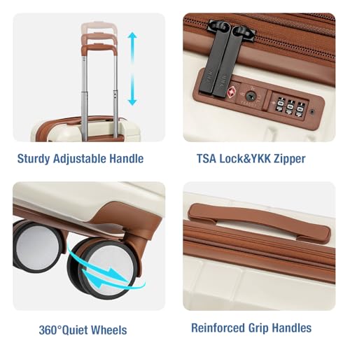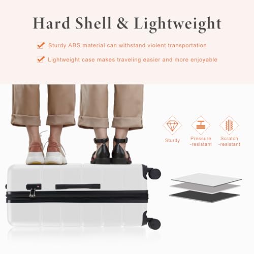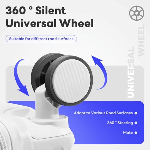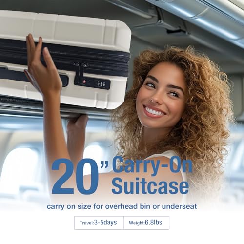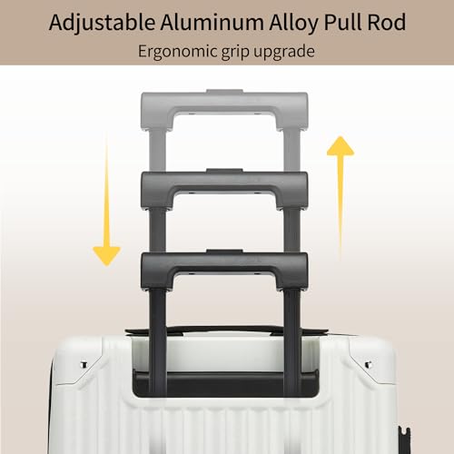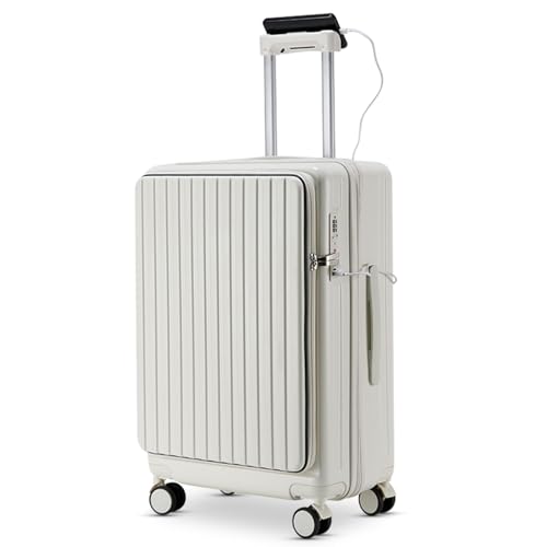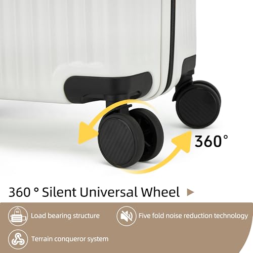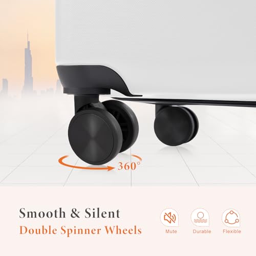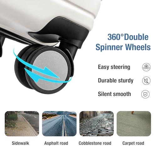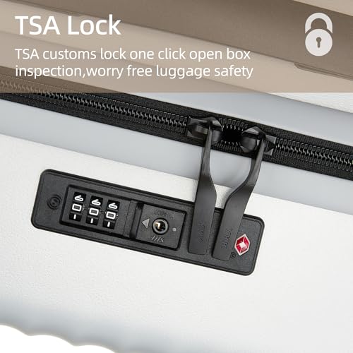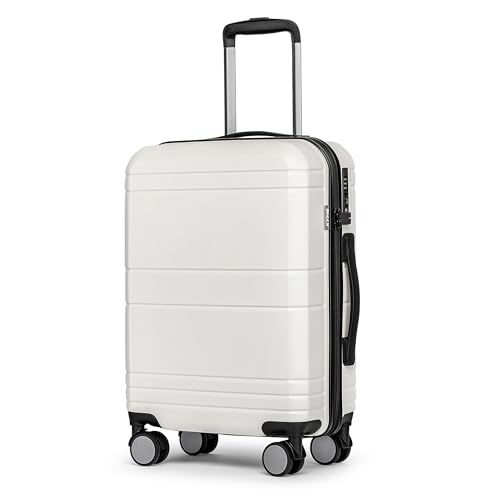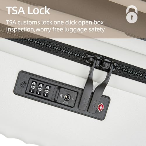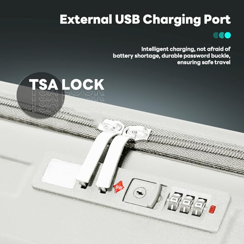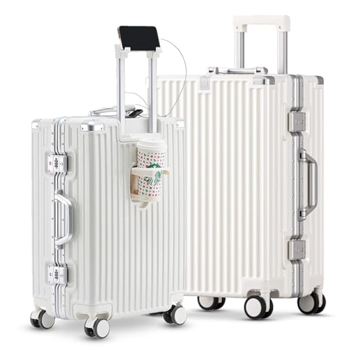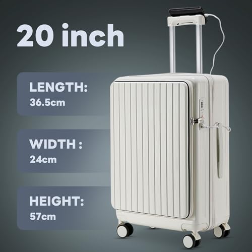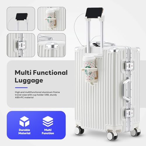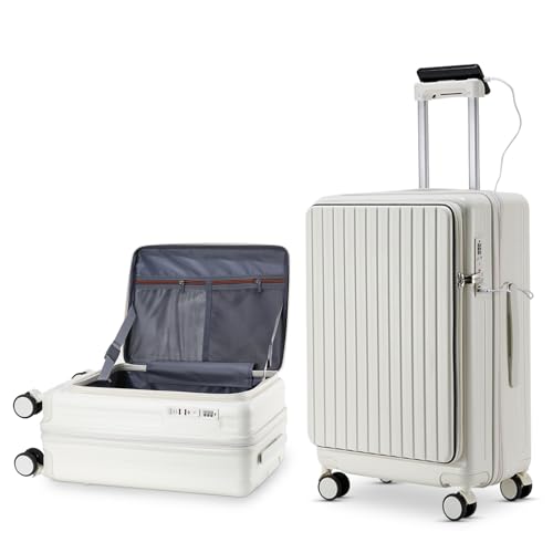 Carry-on with Cup Holder & USB Port Carry on Luggage Durable Luggage Suitcase Lightweight Hardside Luggage with TSA lock & Phone Holder 360° double spinner Wheels (White=20Inch, Small)