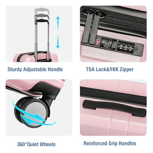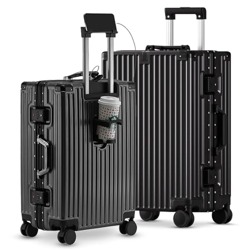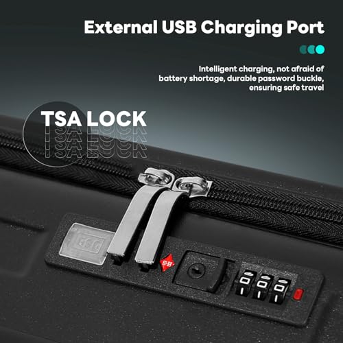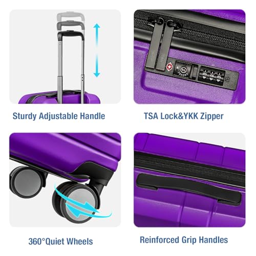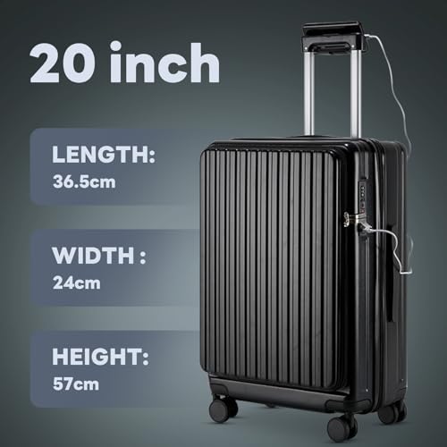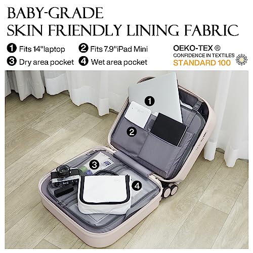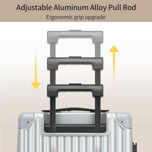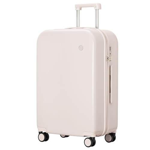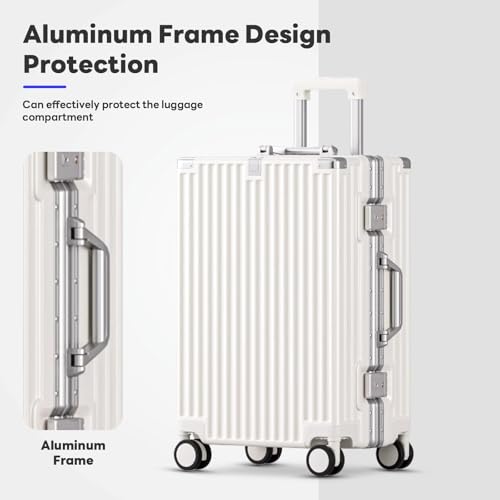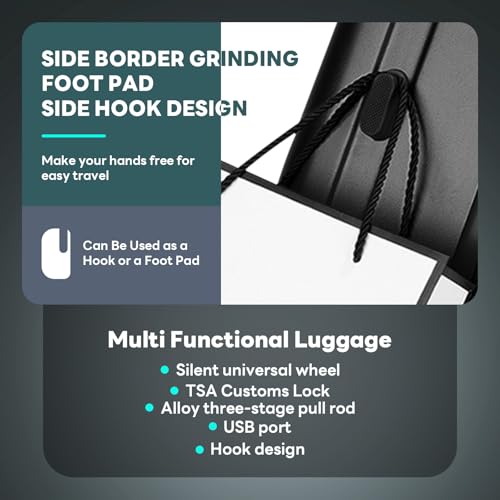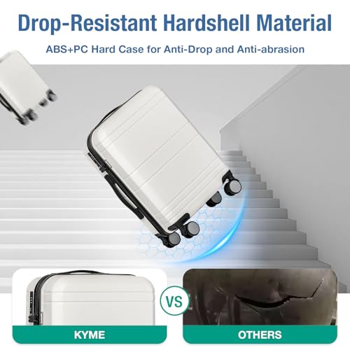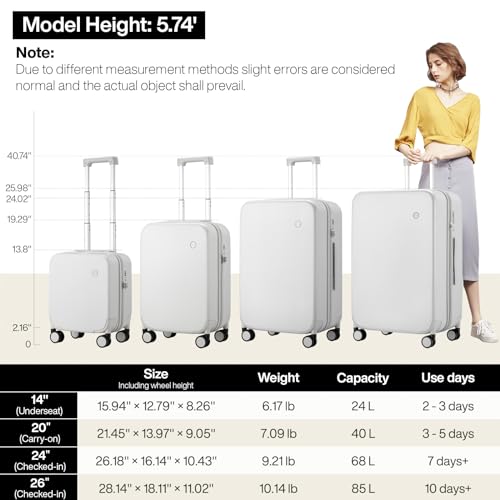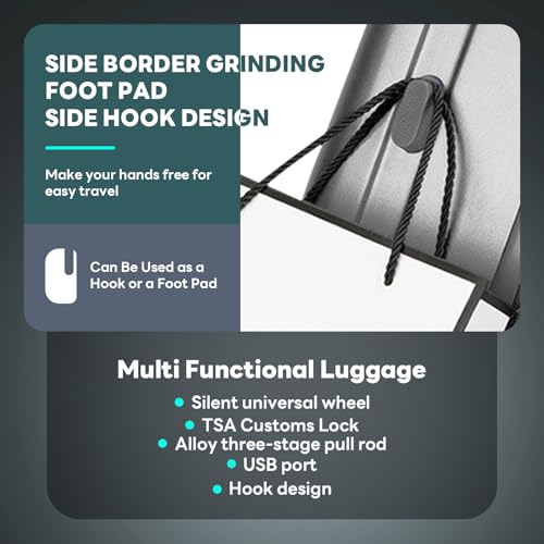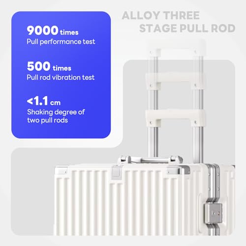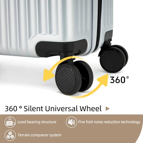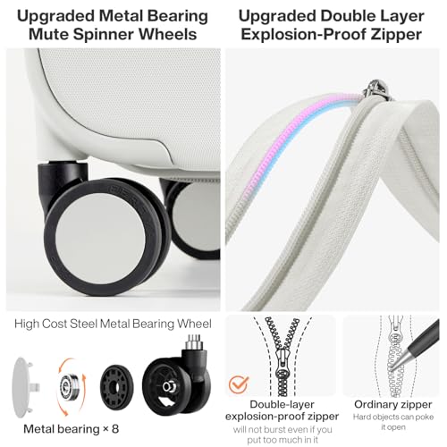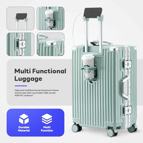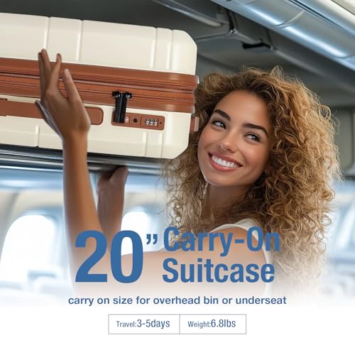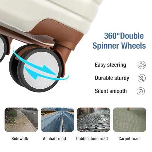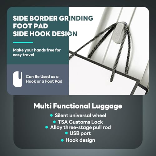 Carry-on with Cup Holder & USB Port Carry on Luggage Durable Luggage Suitcase Lightweight Hardside Luggage with TSA lock & Phone Holder 360° double spinner Wheels (White=20Inch, Small)