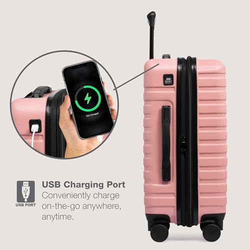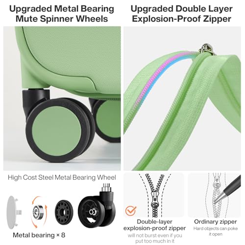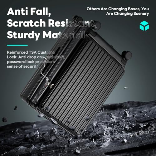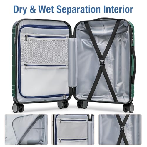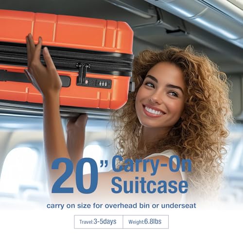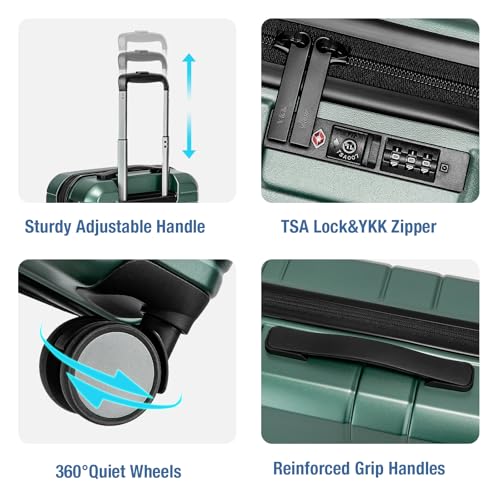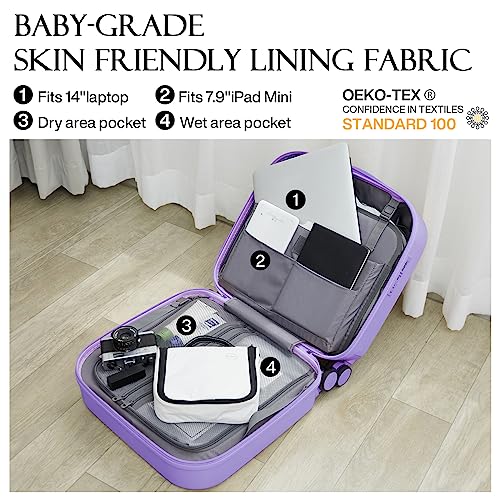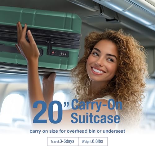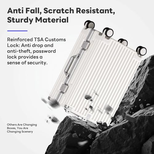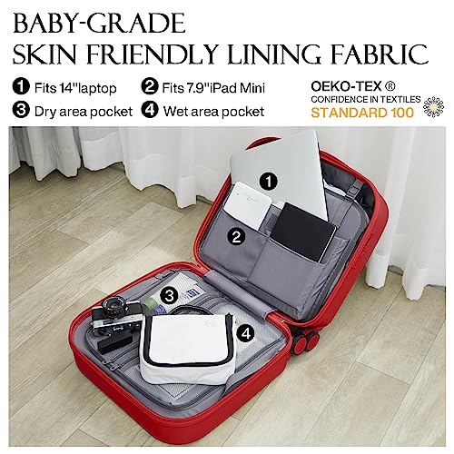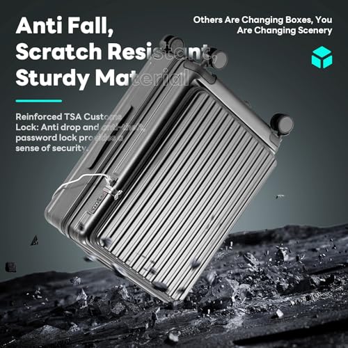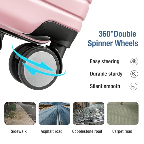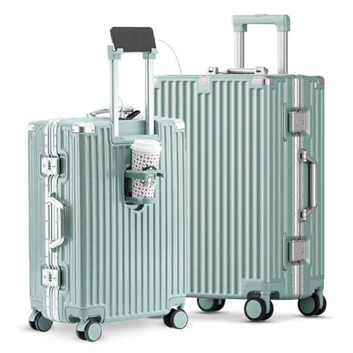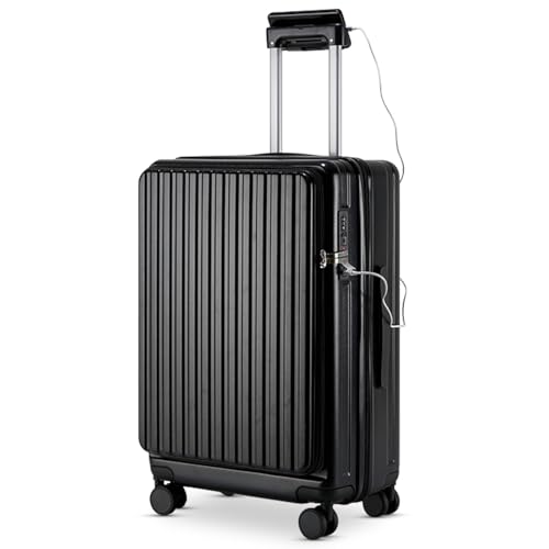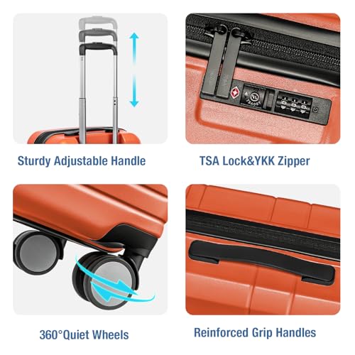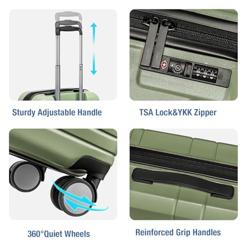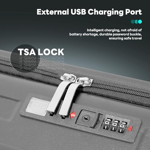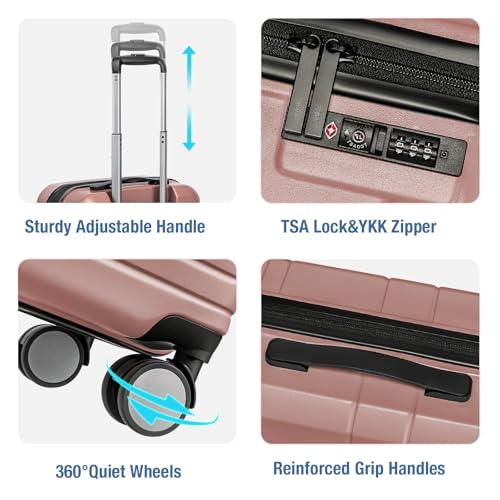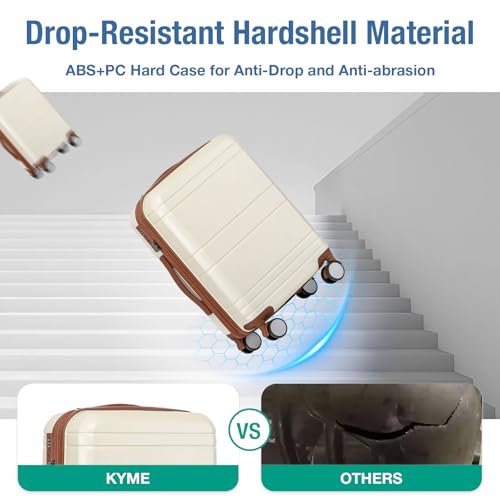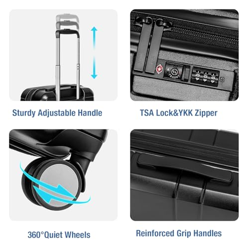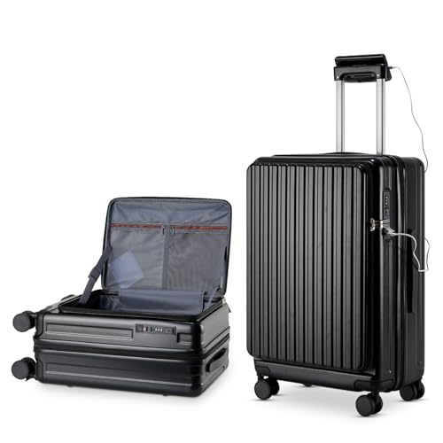 Carry-on with Cup Holder & USB Port Carry on Luggage Durable Luggage Suitcase Lightweight Hardside Luggage with TSA lock & Phone Holder 360° double spinner Wheels (White=20Inch, Small)