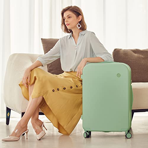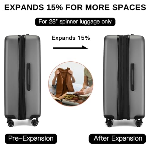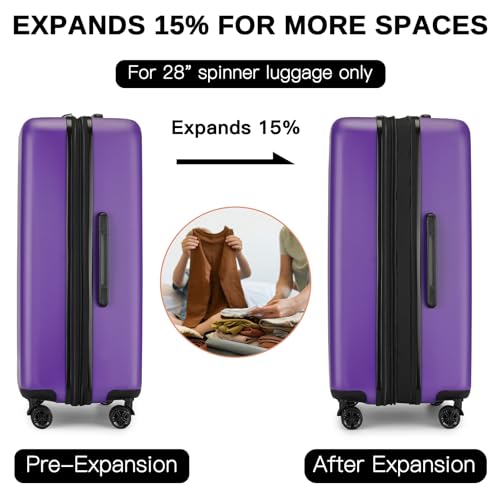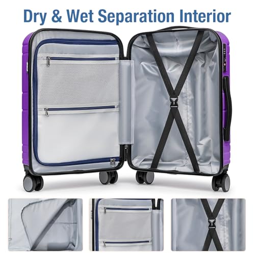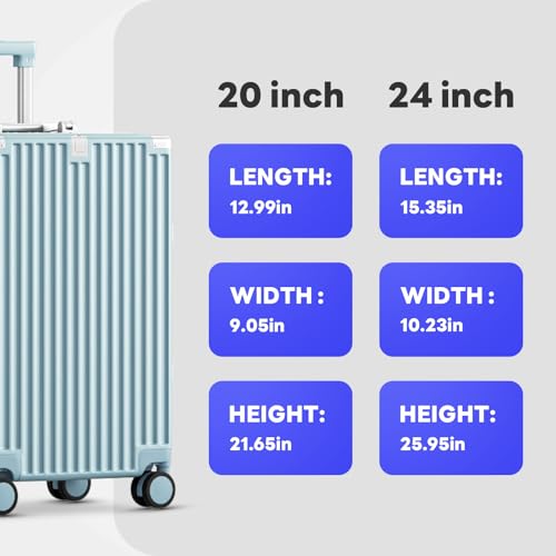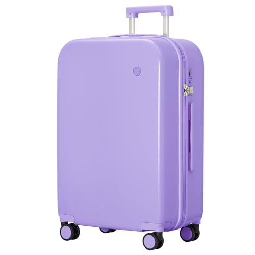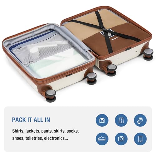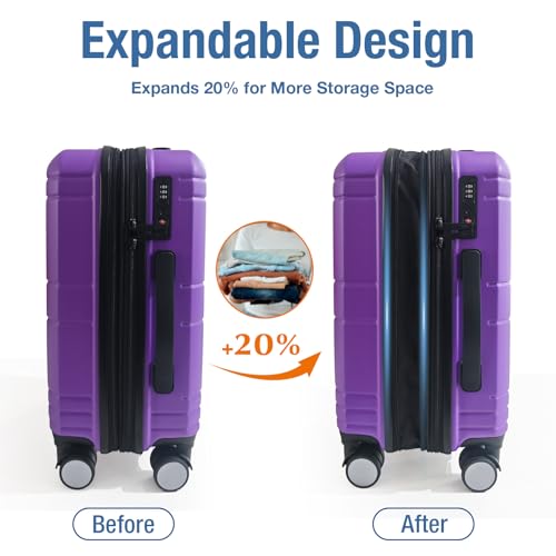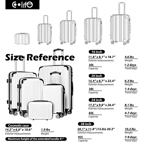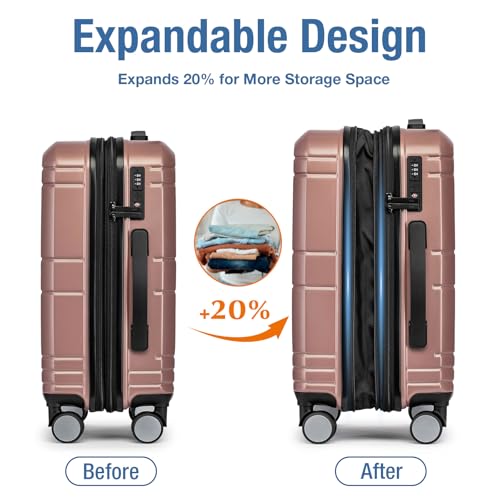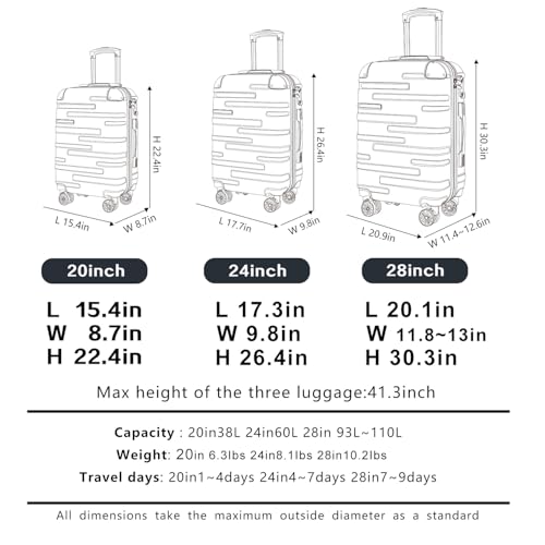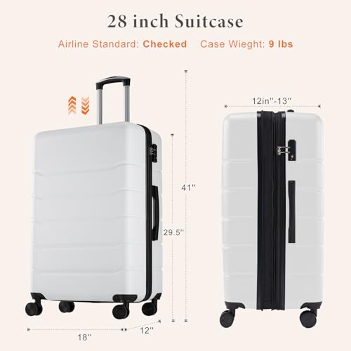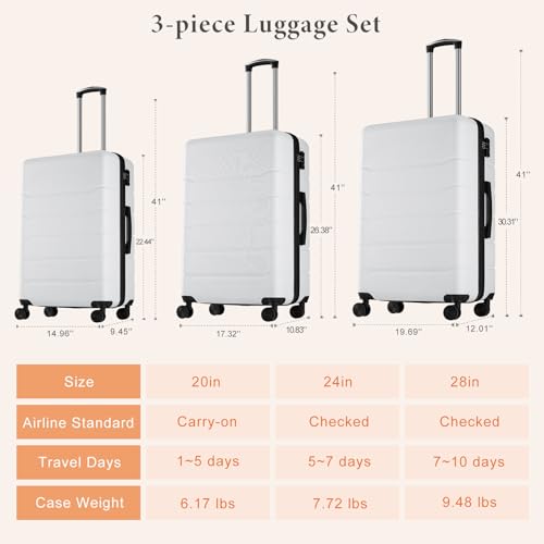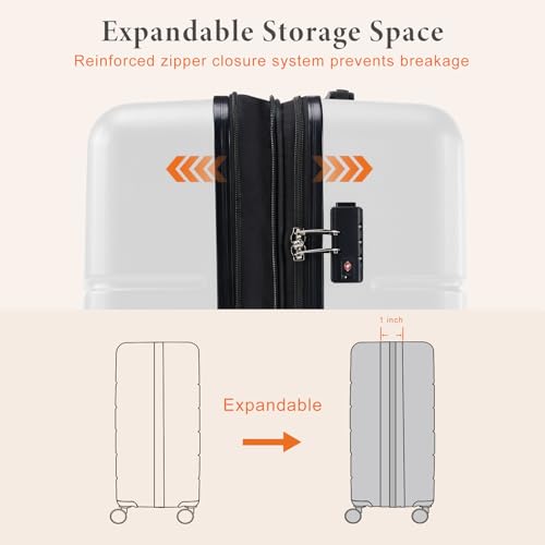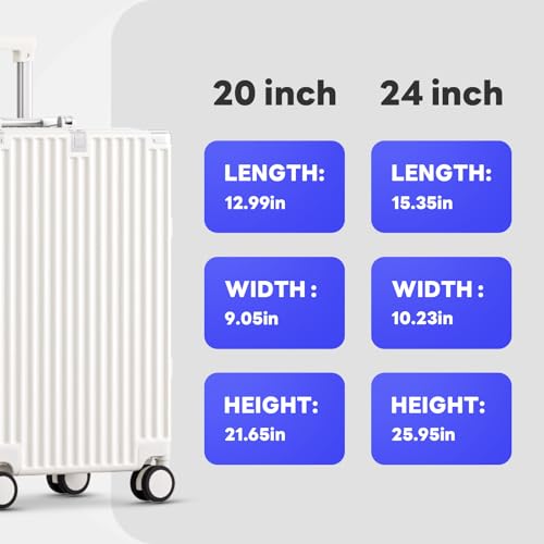 Coolife Luggage Expandable(only 28") Suitcase PC+ABS Spinner 20in 24in 28in Carry on (white grid new, S(20in)_carry on)