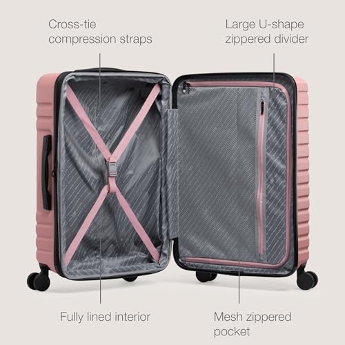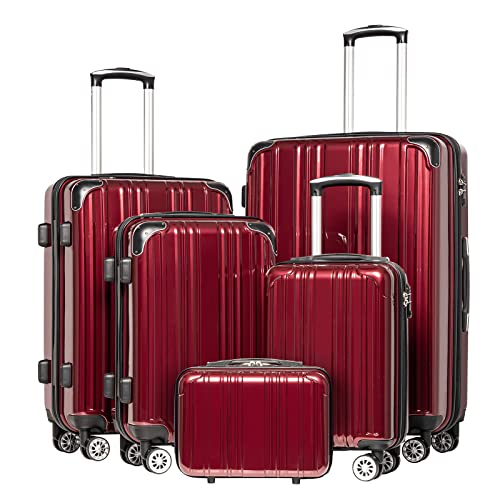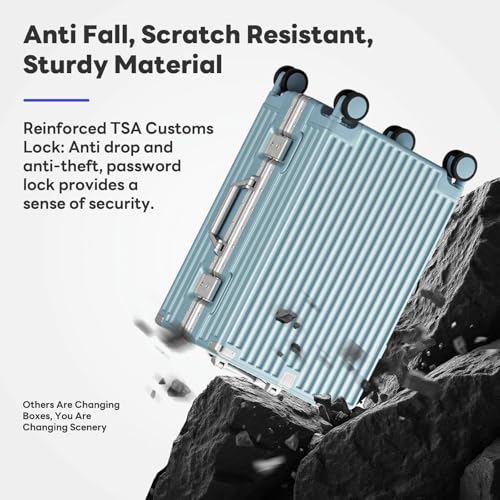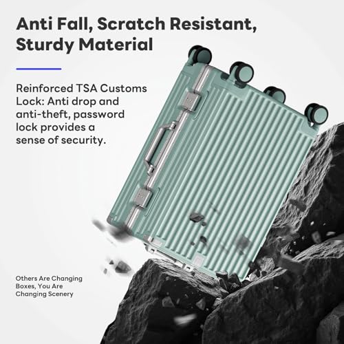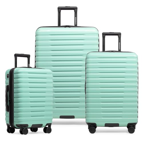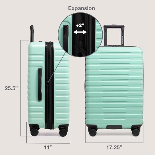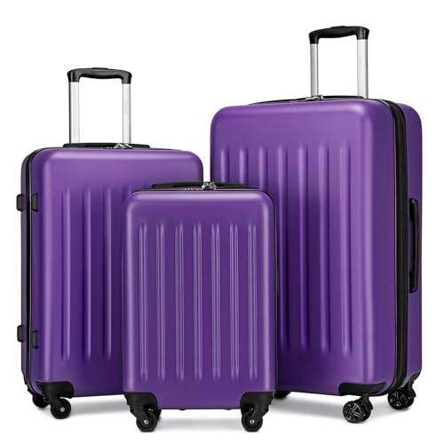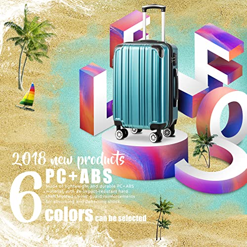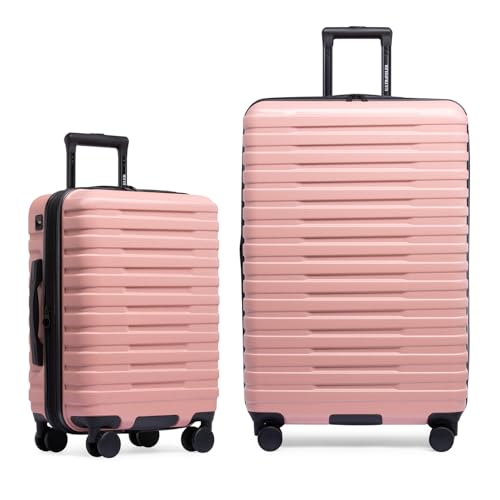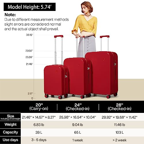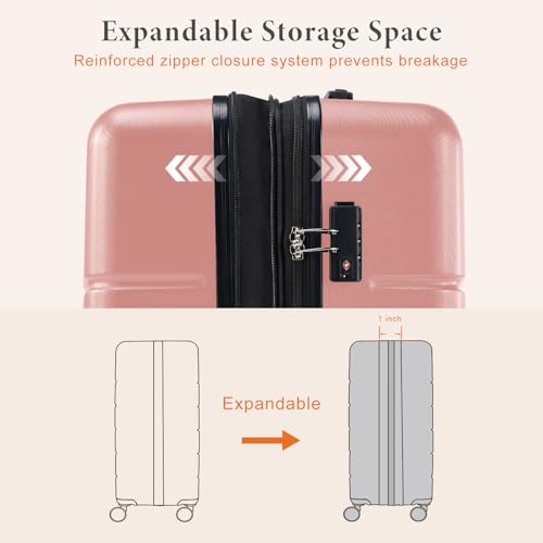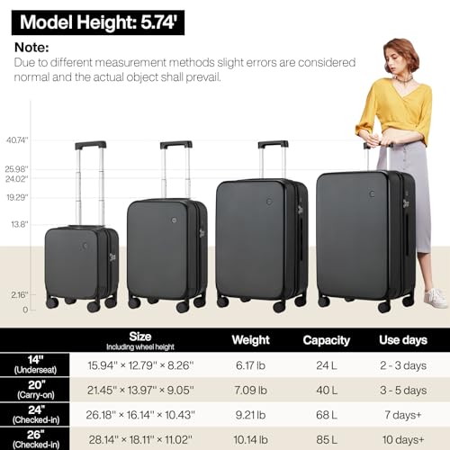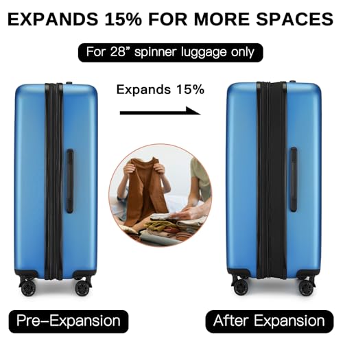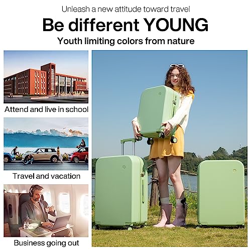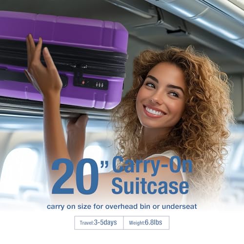Coolife Luggage Expandable(only 28") Suitcase PC+ABS Spinner 20in 24in 28in Carry on (white grid new, S(20in)_carry on)