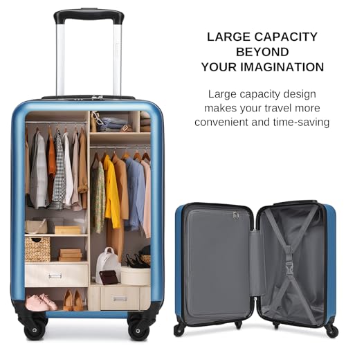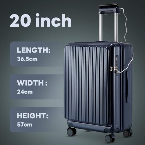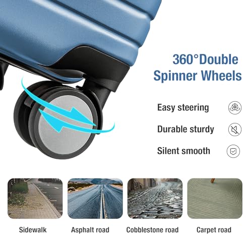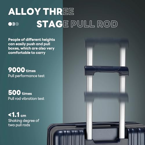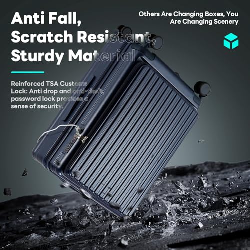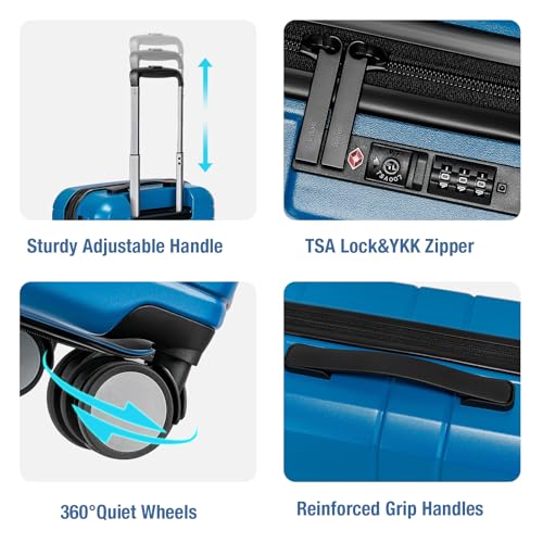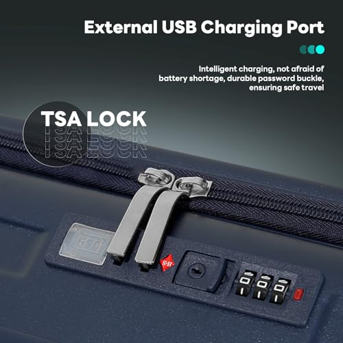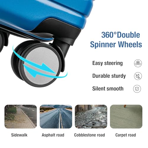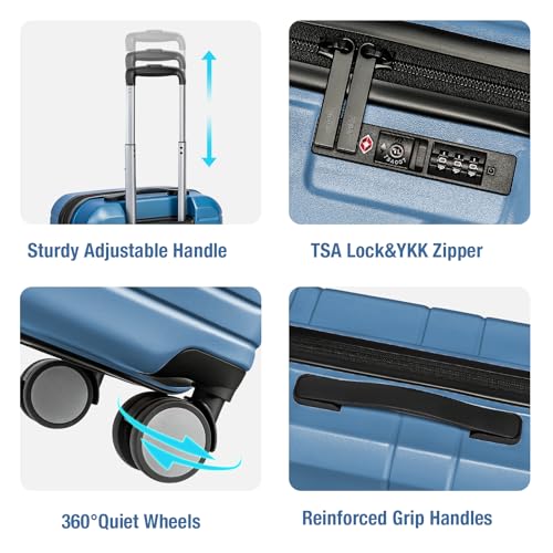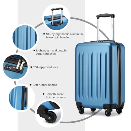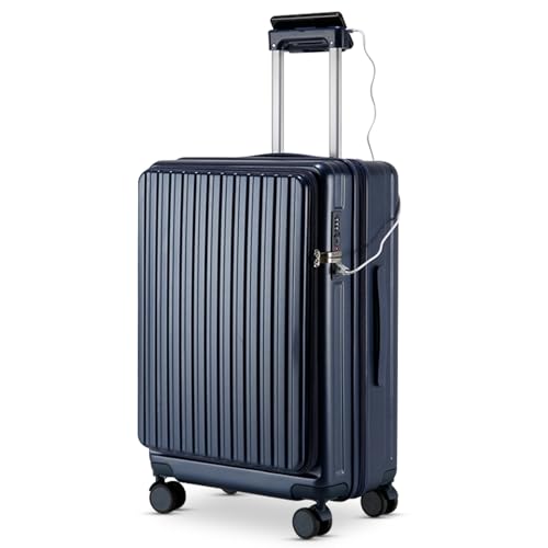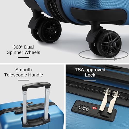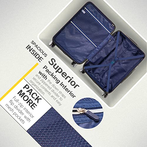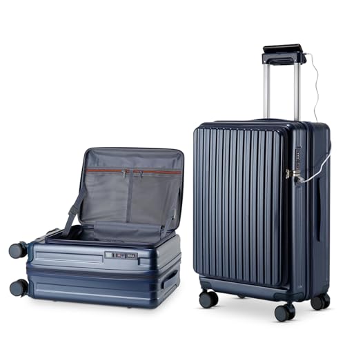 Sweetcrispy Carry on Luggage, Hard Shell ABS, Double Spinner Wheels Lightweight Suitcase TSA Lock, Navy Blue, 24 Inch