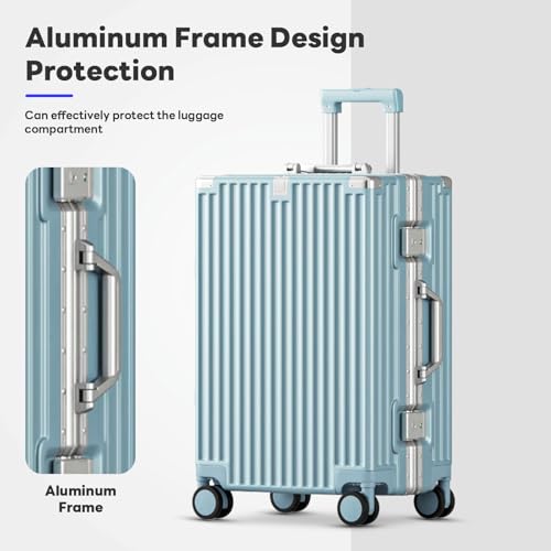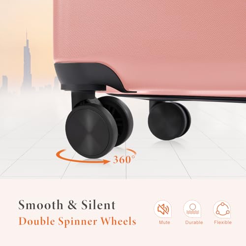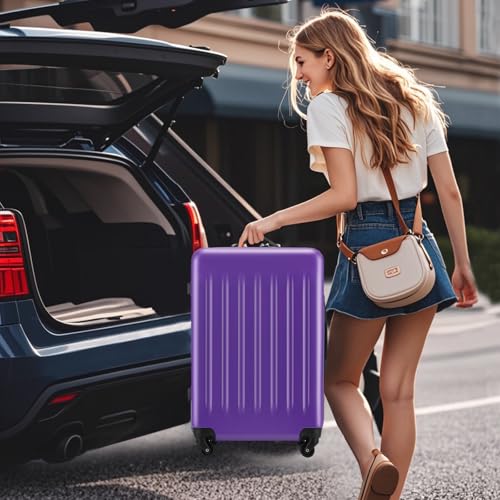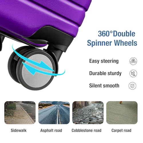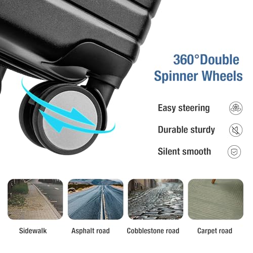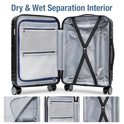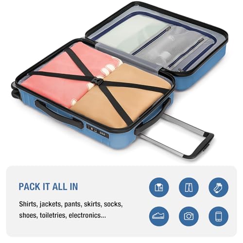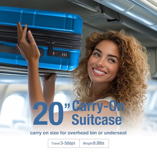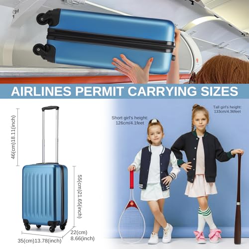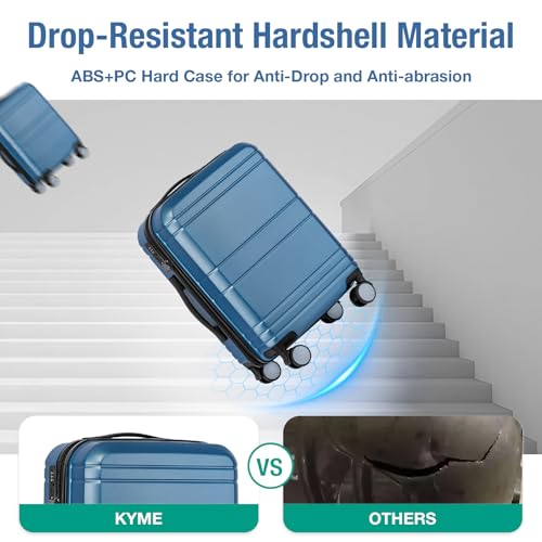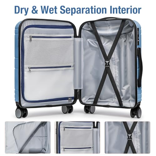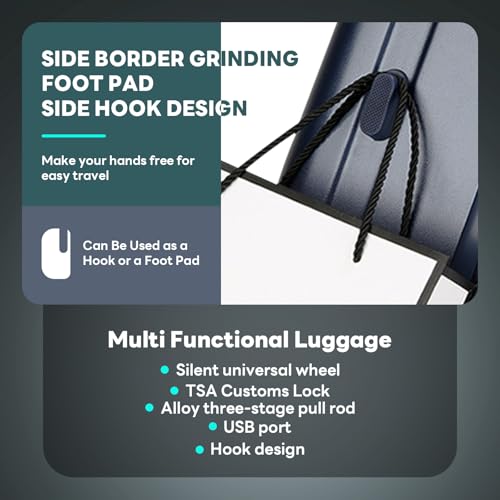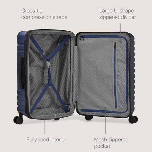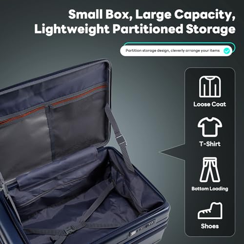 Sweetcrispy Carry on Luggage, Hard Shell ABS, Double Spinner Wheels Lightweight Suitcase TSA Lock, Navy Blue, 24 Inch