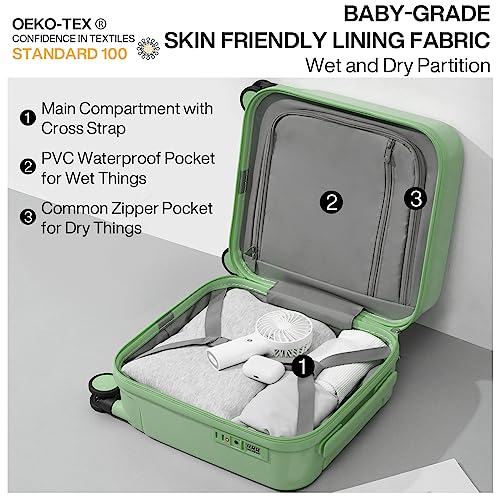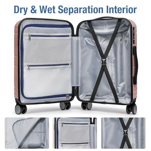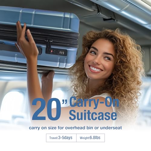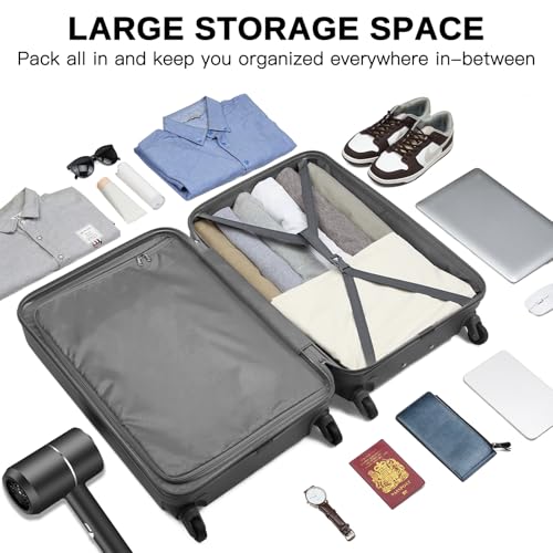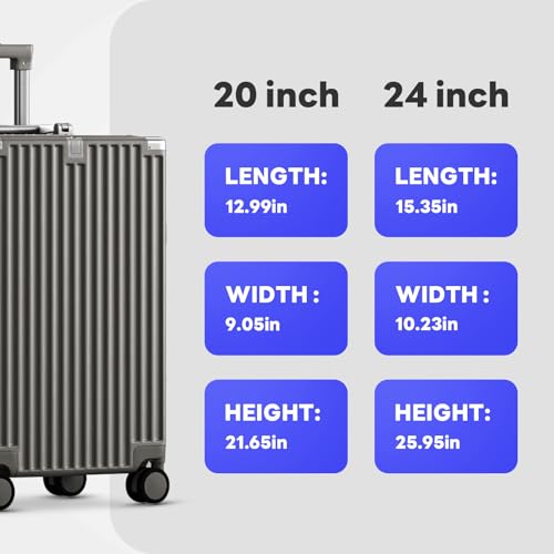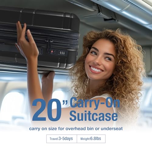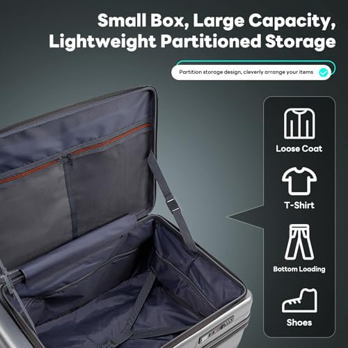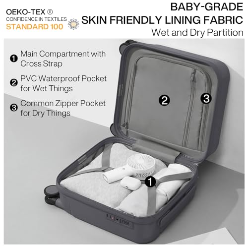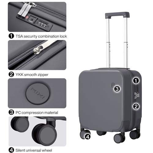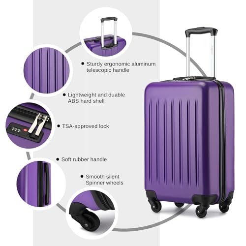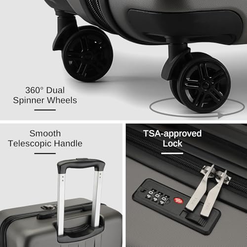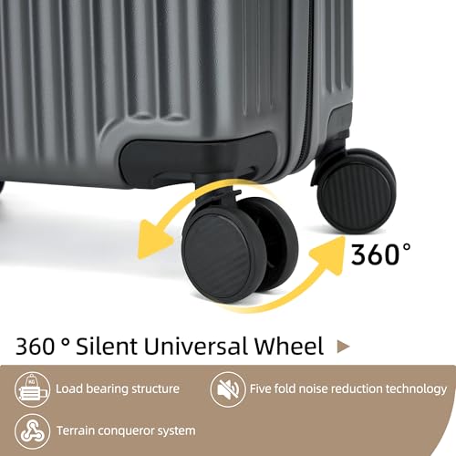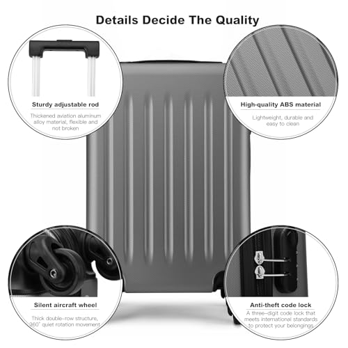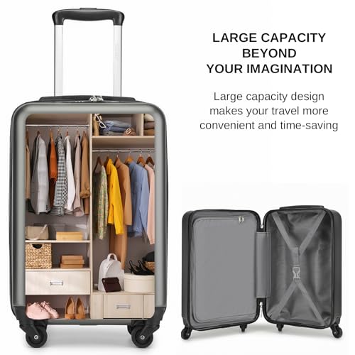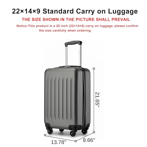 Kono Small Carry on Suitcase 20 Inch Hardside with Spinner Wheels, Lightweight Rolling Cabin for Airplanes Travel (Grey, For 1-3 Days Travel)