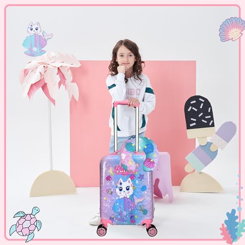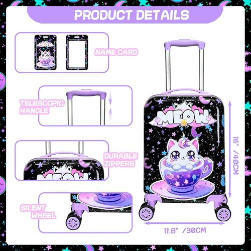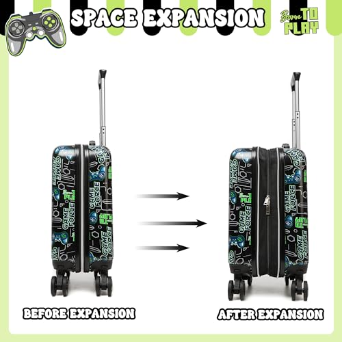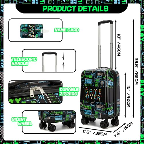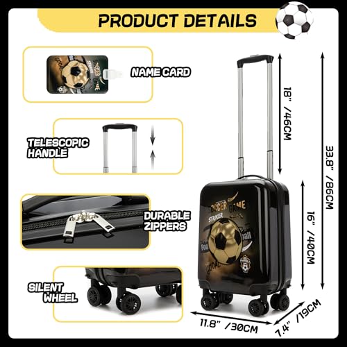 Kid’s Luggage Set 2 Piece Suitcase Set 16’’ Hardside Luggage with Spinner Wheels Girls Boys Carry on Toddler Luggage Travel Rolling Luggage Carry on Luggage Airline Approved Football