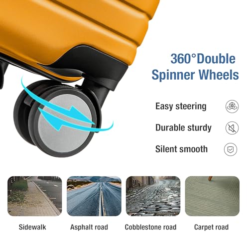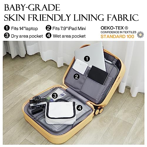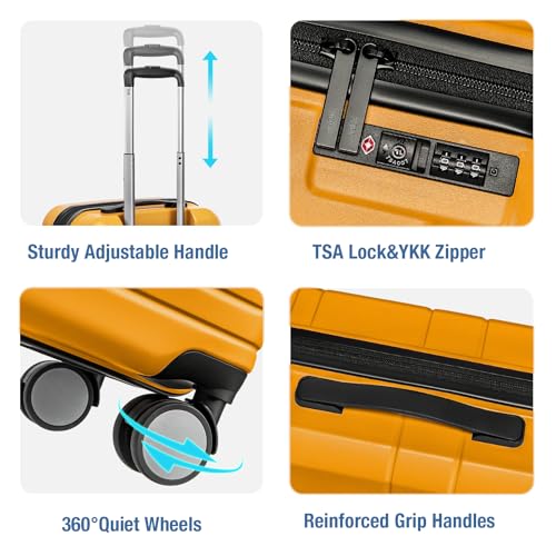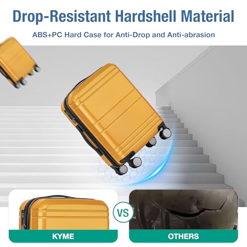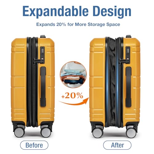 KYME Expandable Carry On Luggage 22x14x9 Airline Approved 20 Inch Carry On Suitcase with Spinner Wheels Hardside Lightweight Small Travel Rolling Luggage with TSA Lock for Women Yellow