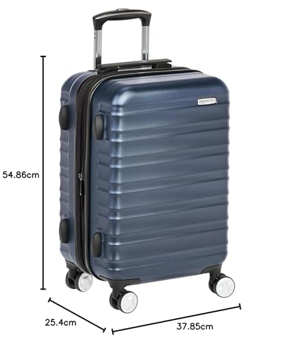 Amazon Basics 21-inch Carry On Luggage, Suitcase With Wheels (8 Spinner Wheels), TSA Lock, Expandable Capacity, Interior Divider and Pocket For Dry and Damp Clothes, Navy Blue