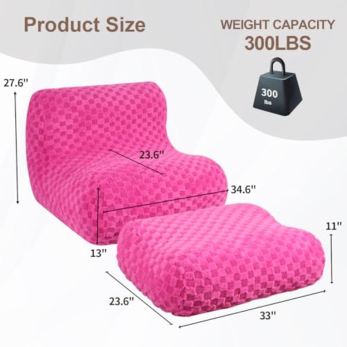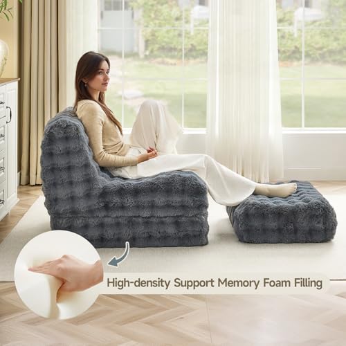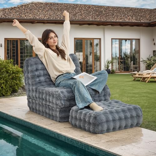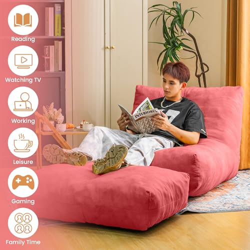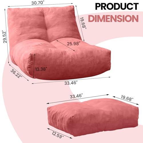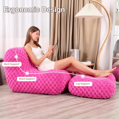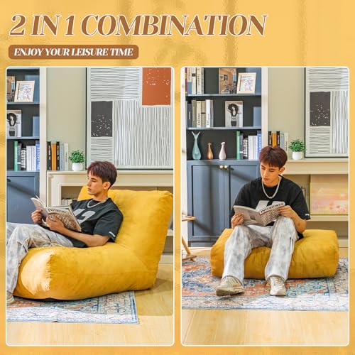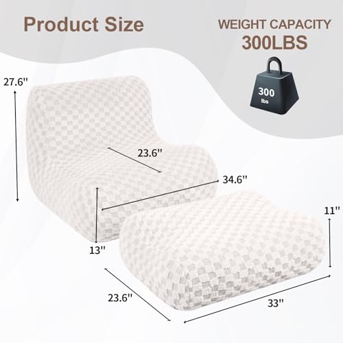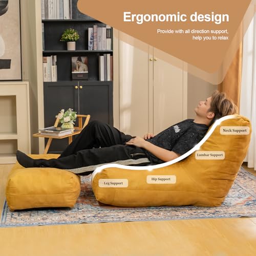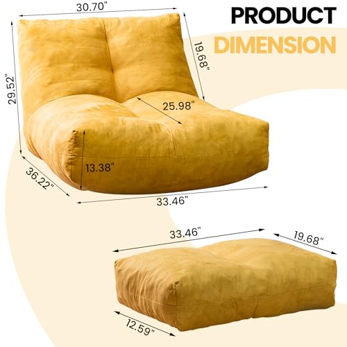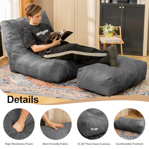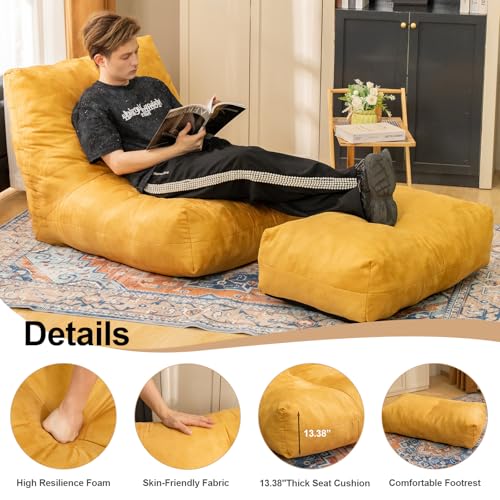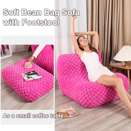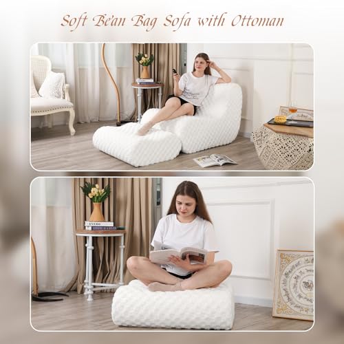 Bean Bag Chair with Ottoman, Comfy Bean Bag Sofa with Memory Foam, Lazy BeanBag Sofa with Footstool, Fireside Bean Bag Couch for Living Room, Bedroom, Apartment