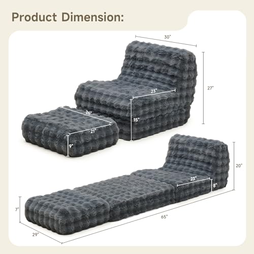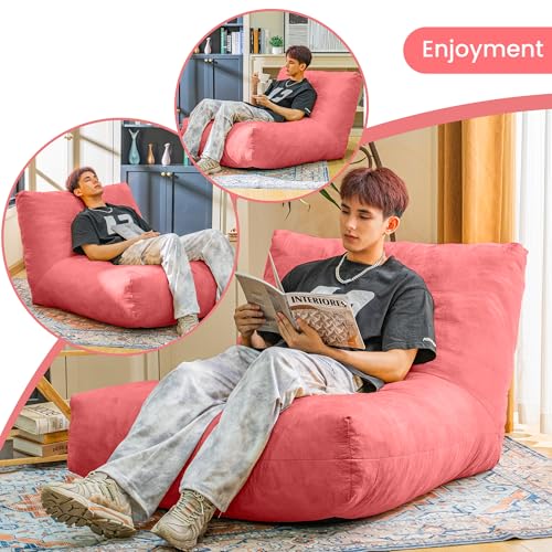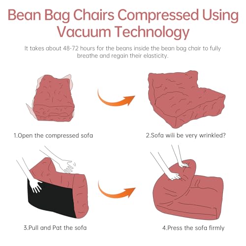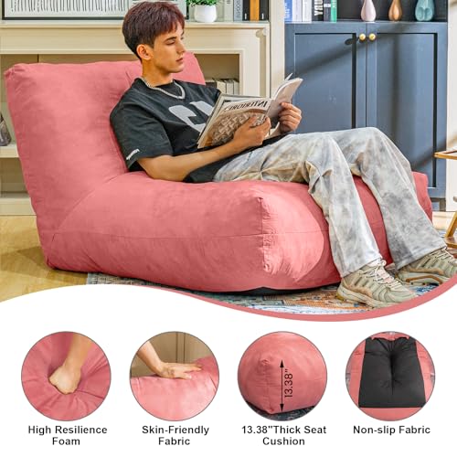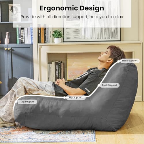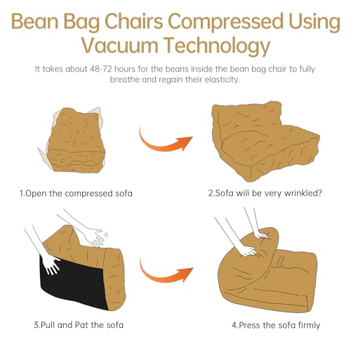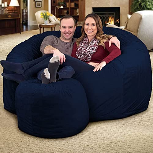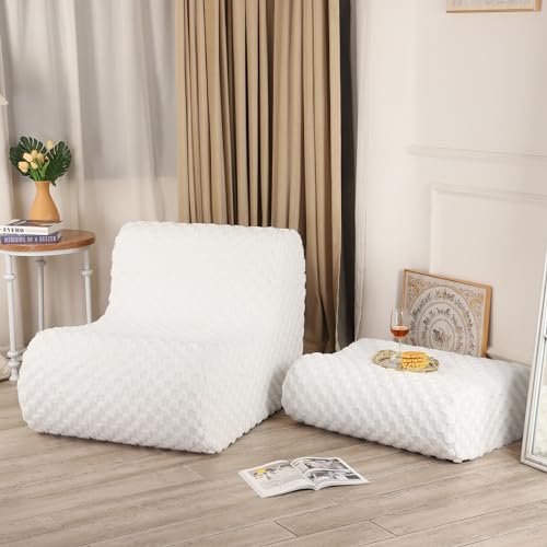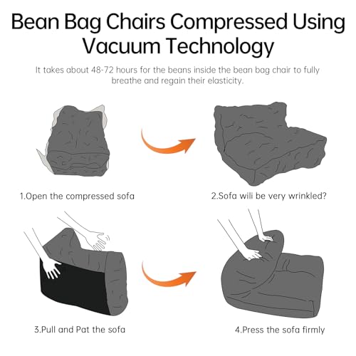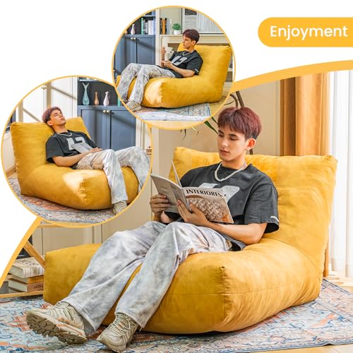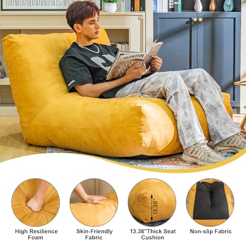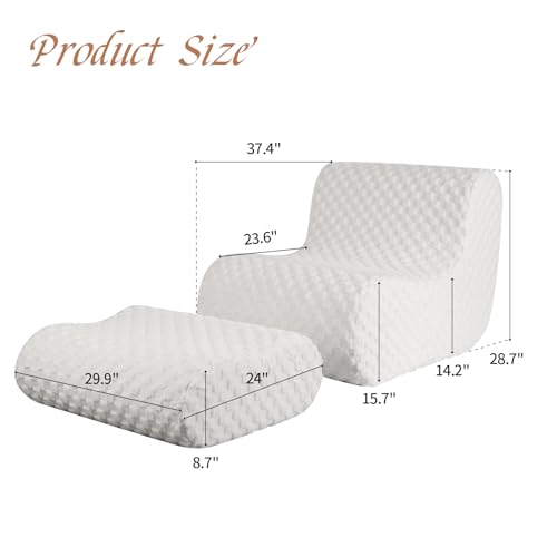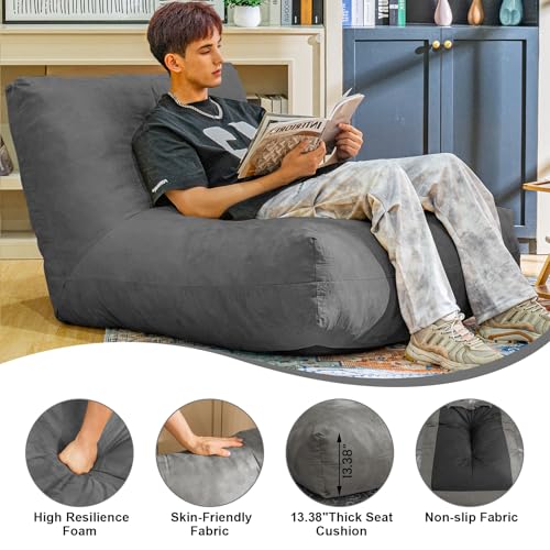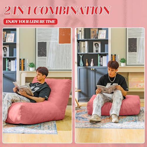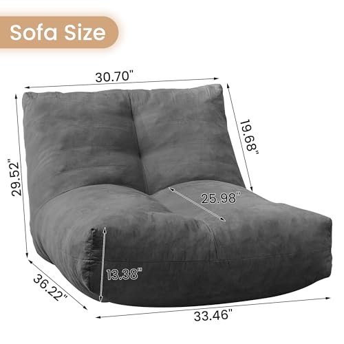 Bean Bag Chair with Ottoman, Comfy Bean Bag Sofa with Memory Foam, Lazy BeanBag Sofa with Footstool, Fireside Bean Bag Couch for Living Room, Bedroom, Apartment