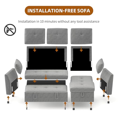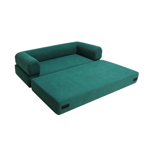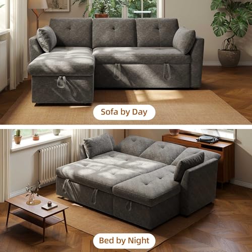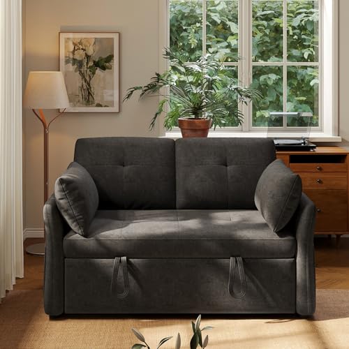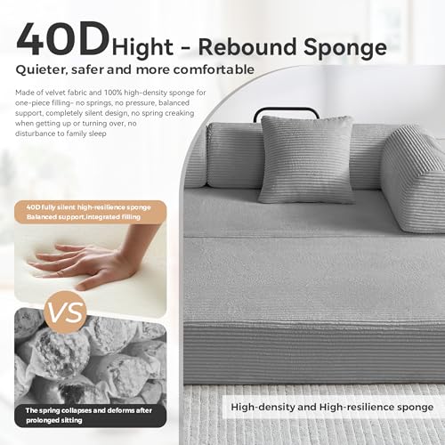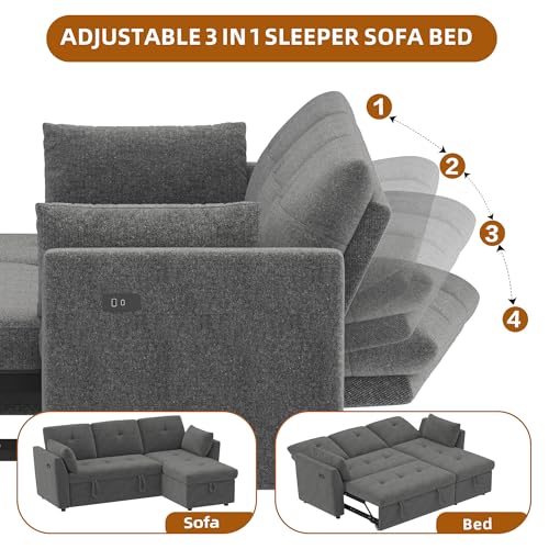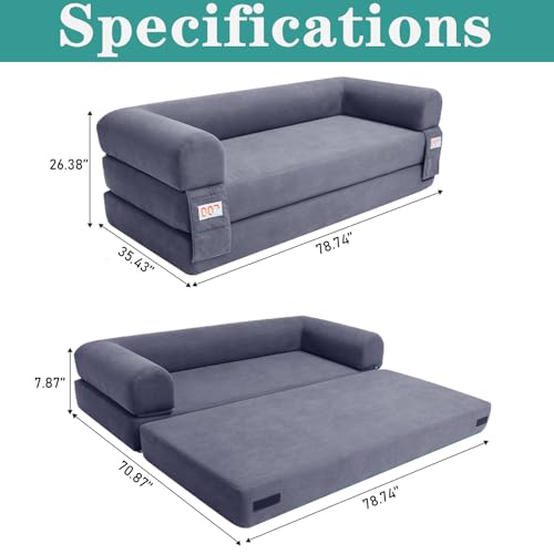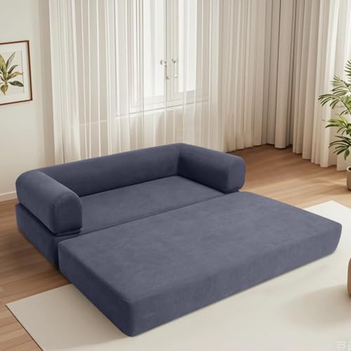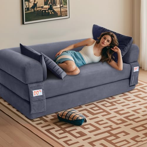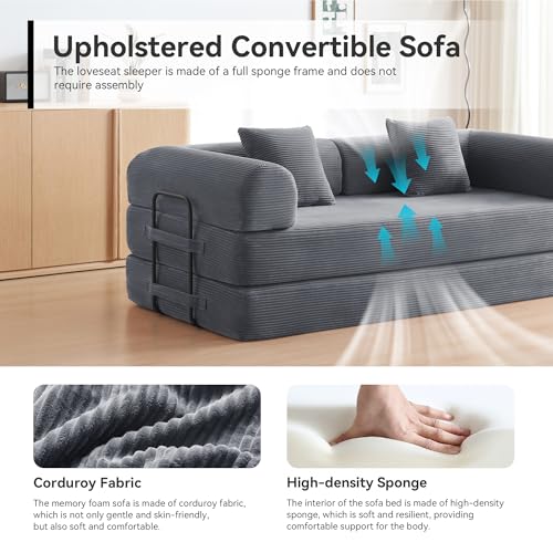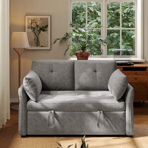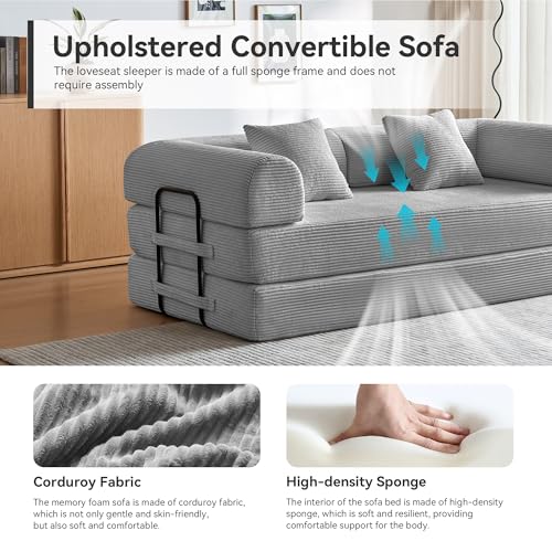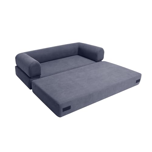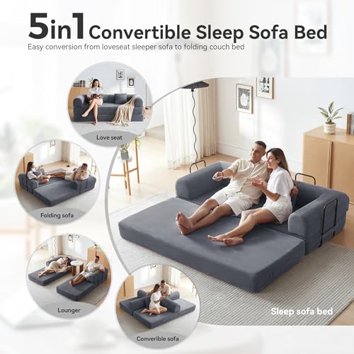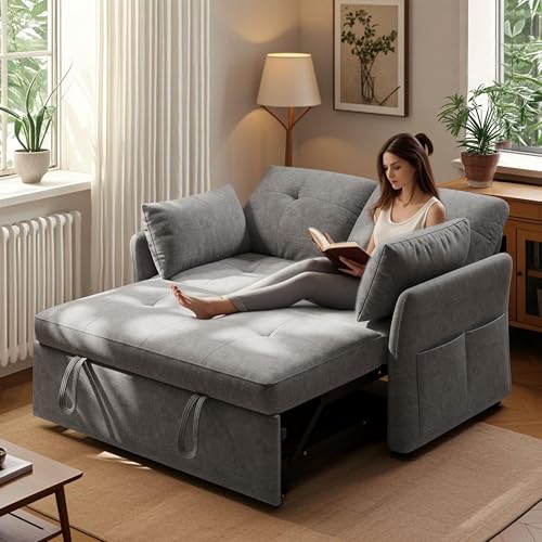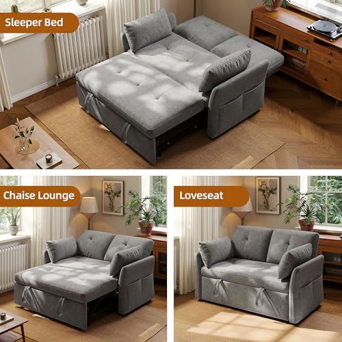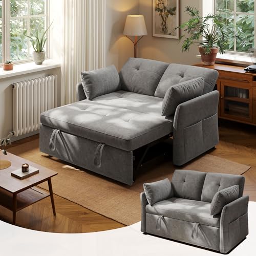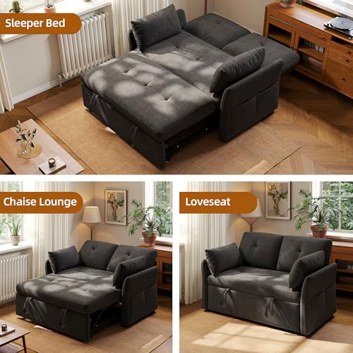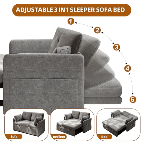 wanan 3 in 1 Convertible Sleeper Sofa Bed Tool-Free Assembly, Adjustable Backrest Velvet Pull Out Couch, Loveseat Futon Couch with Side Pocket, Couches for Living Room, Bedroom, Grey