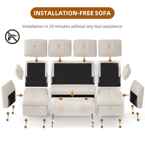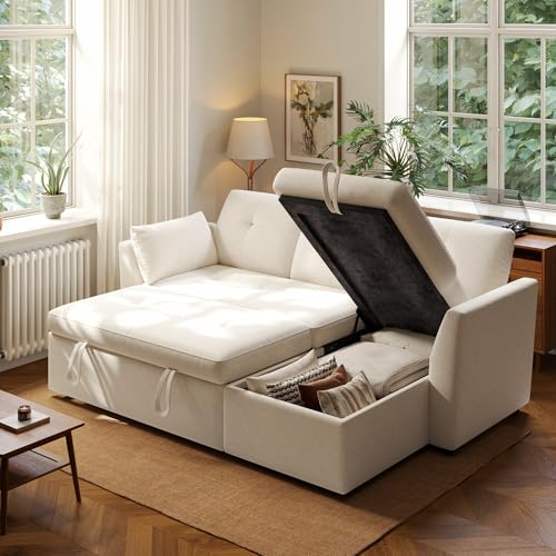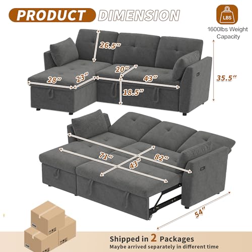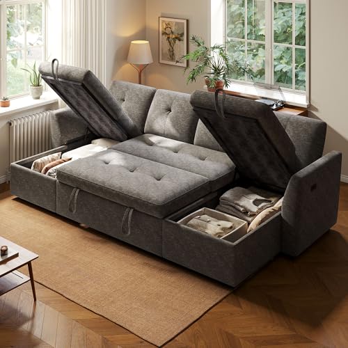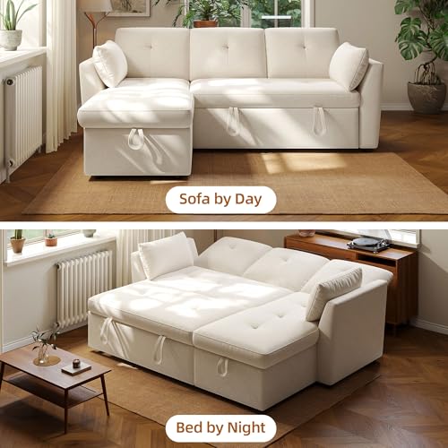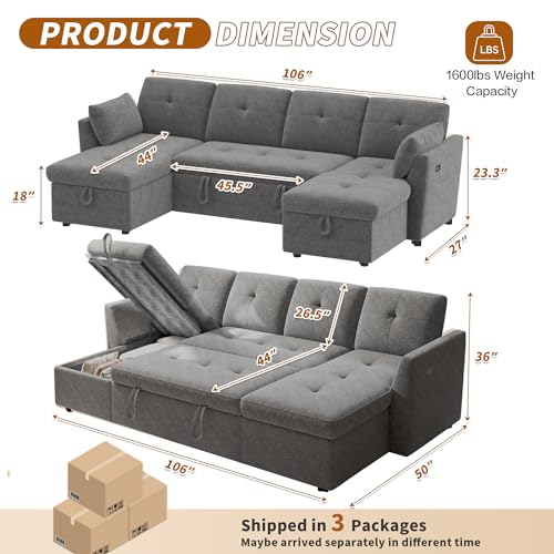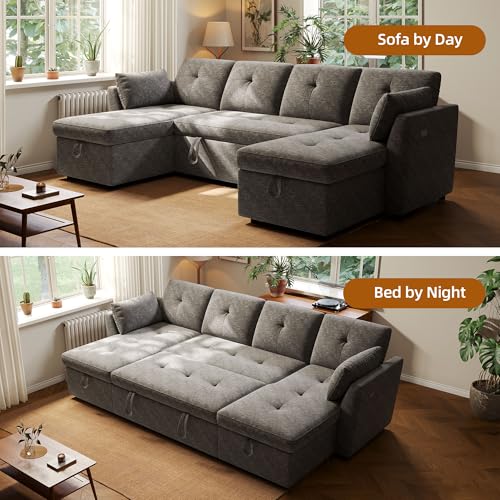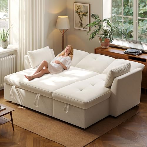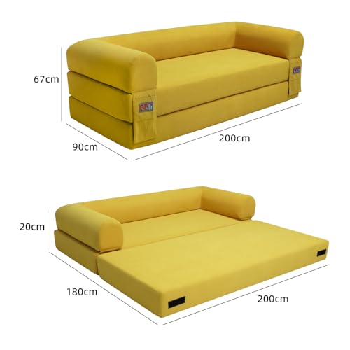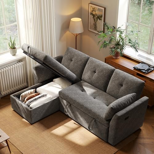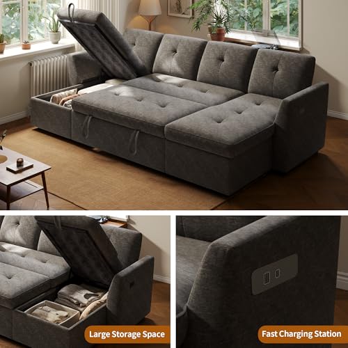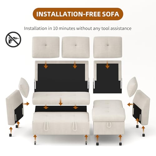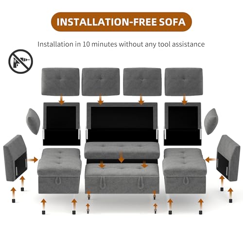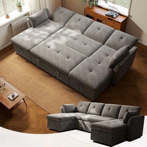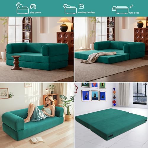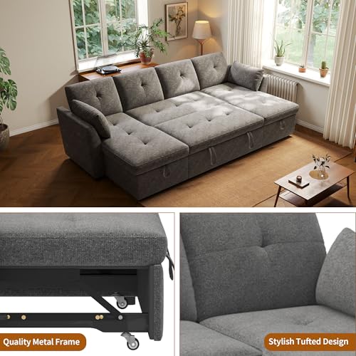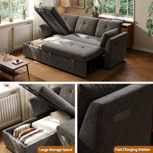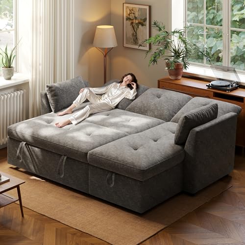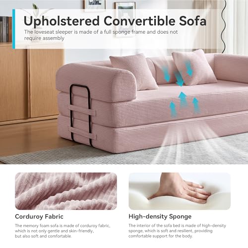 wanan 3 in 1 Convertible Sleeper Sofa Bed Tool-Free Assembly, Adjustable Backrest Velvet Pull Out Couch, Loveseat Futon Couch with Side Pocket, Couches for Living Room, Bedroom, Grey