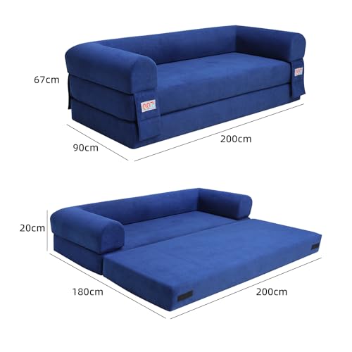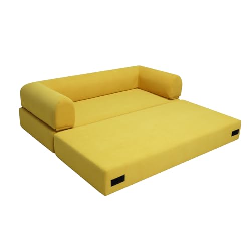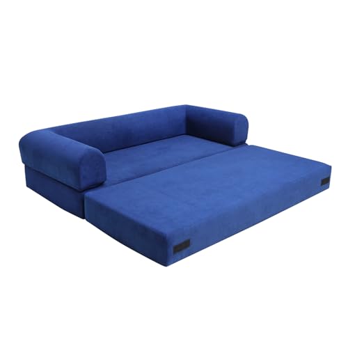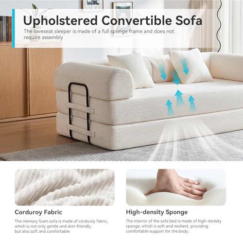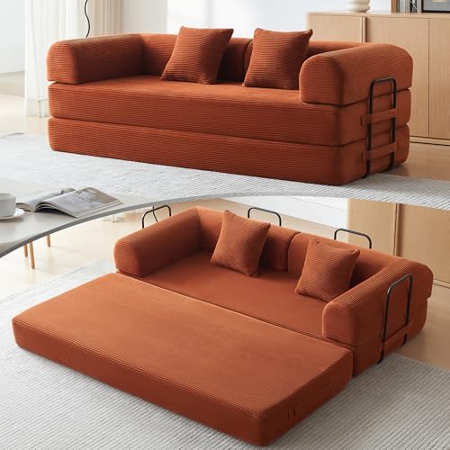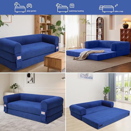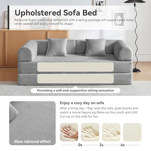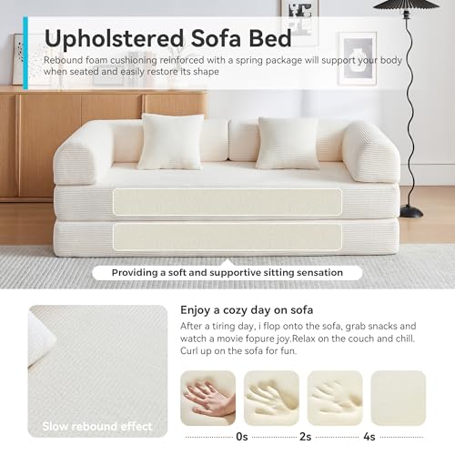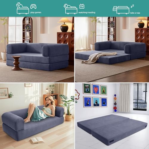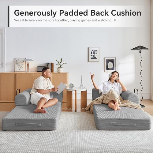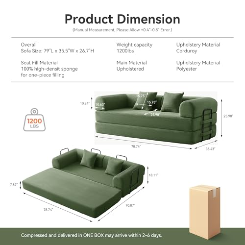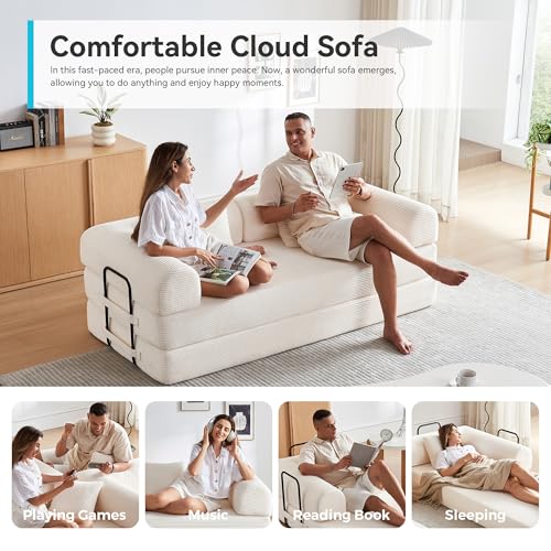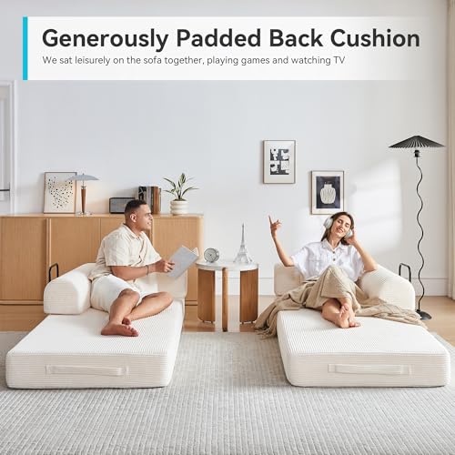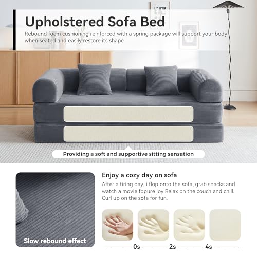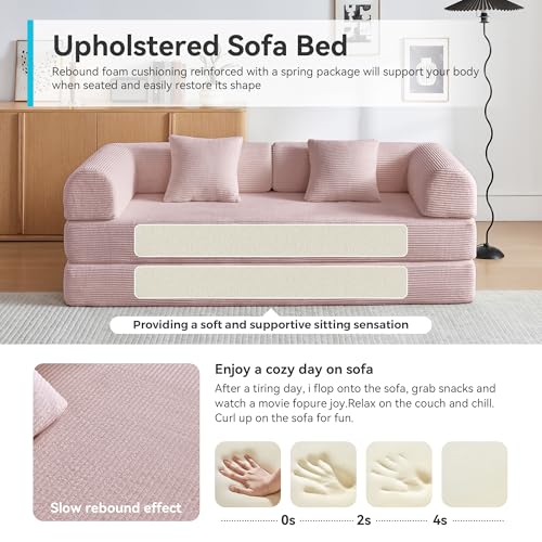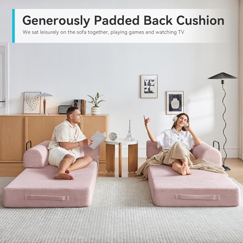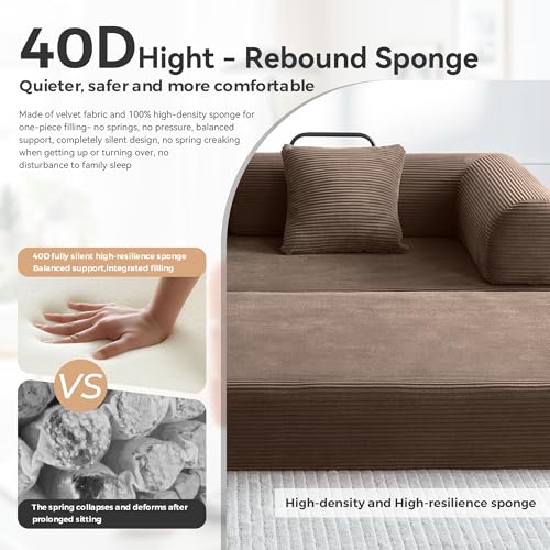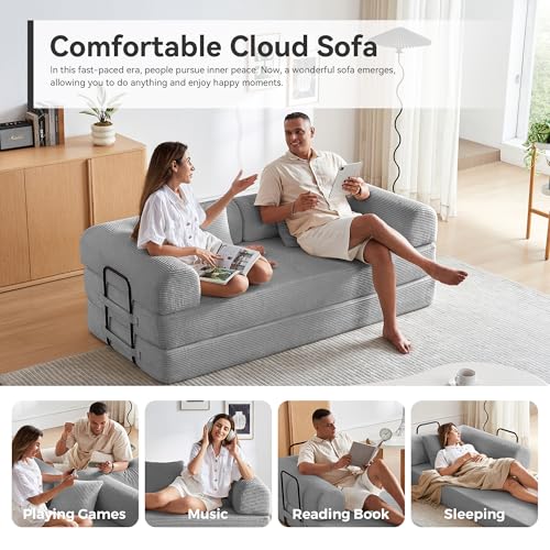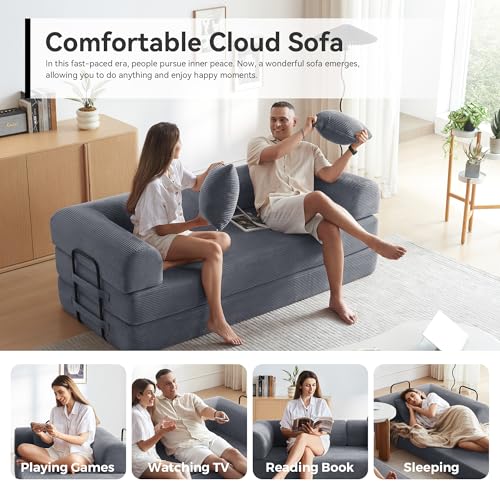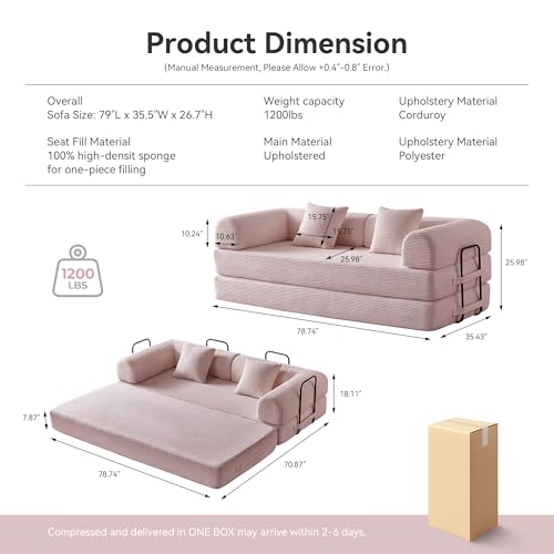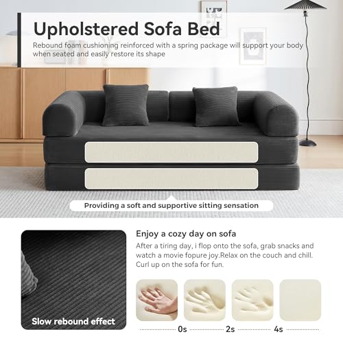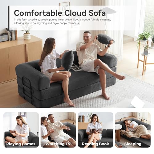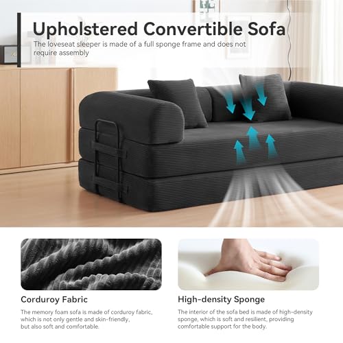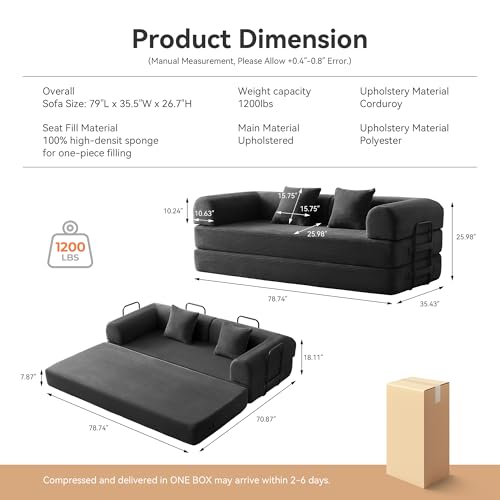 Convertible Sleeper Sofa Bed with Cylindrical Pillow, Comfy Foldable Sofa Bed Compressed Sofa in Box, Floor Sofa Lounge Couch for Living Room Bedroom Lounge Studio, Tool-Free Assembly (Black)
