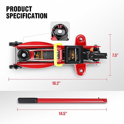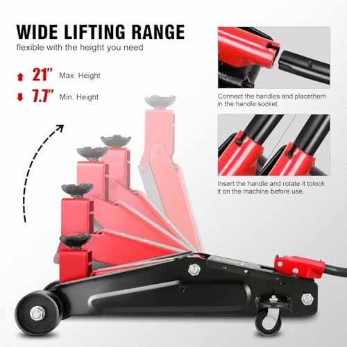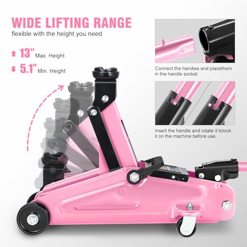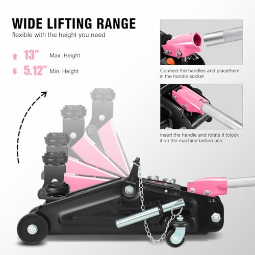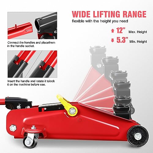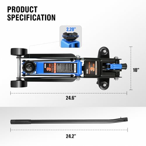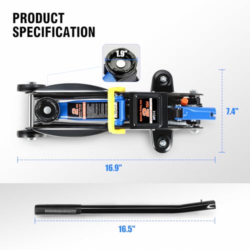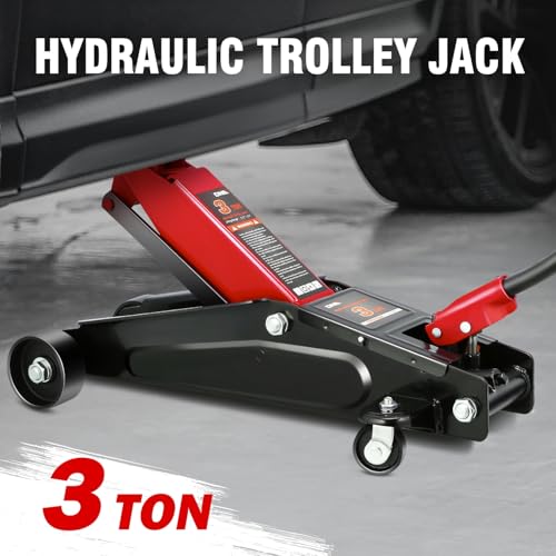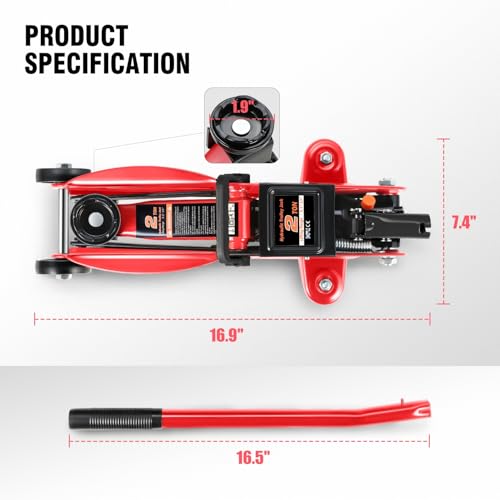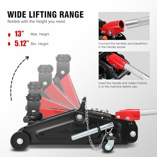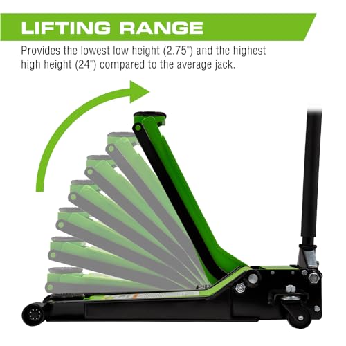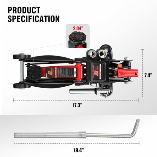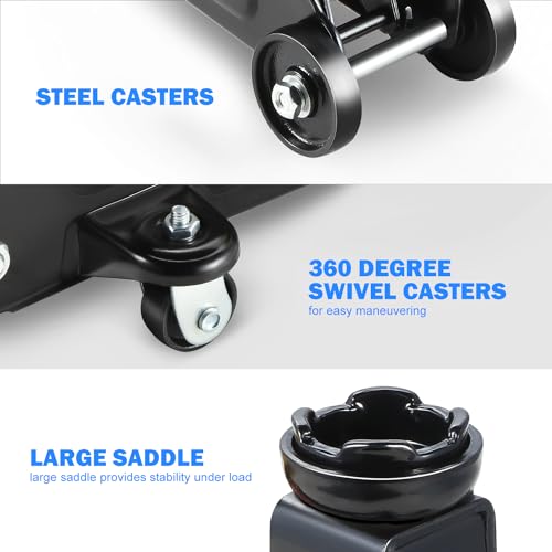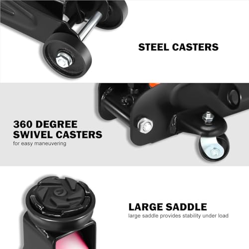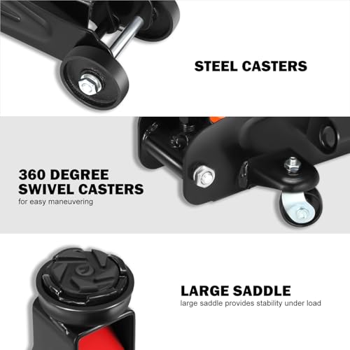DNA MOTORING TOOLS-00234 Low Profile Hydraulic Trolley Service/Floor Jack, 2 Ton (4000 lbs) Capacity, Lifting Range 5.1"-13", Black