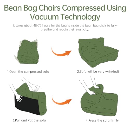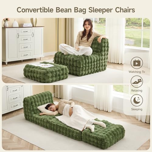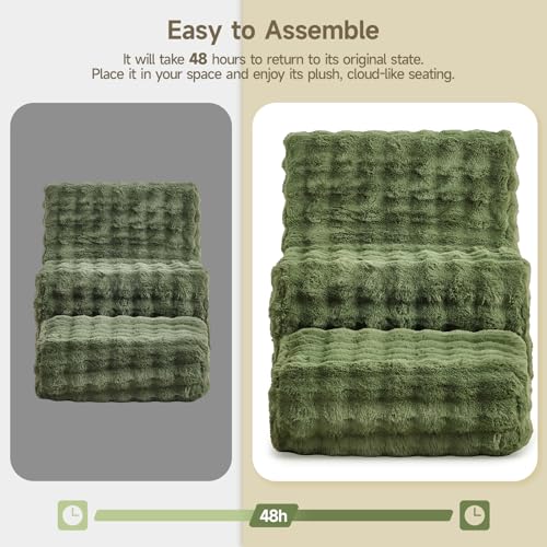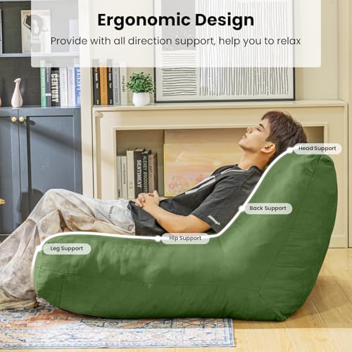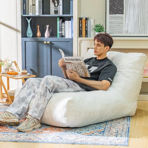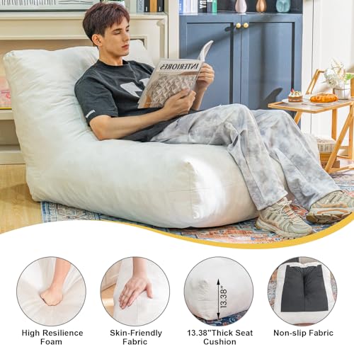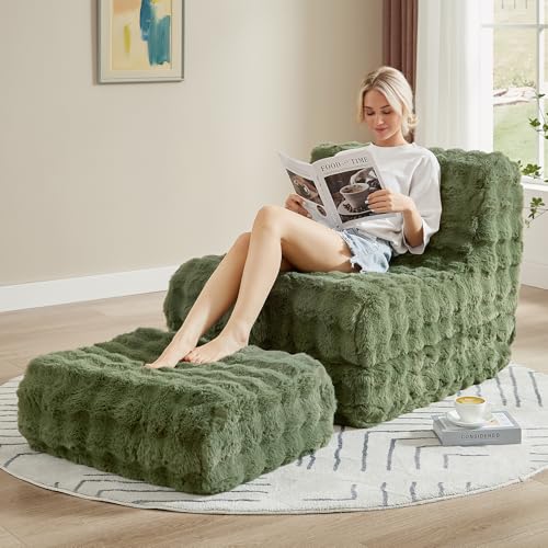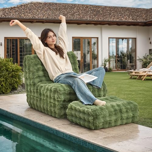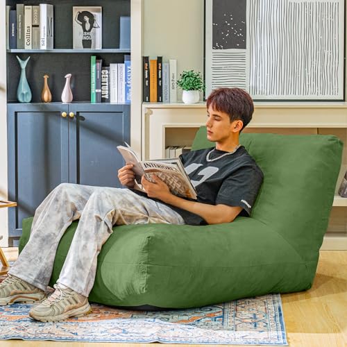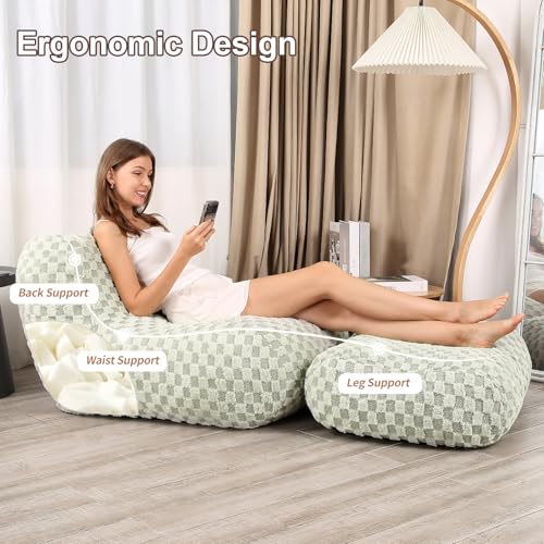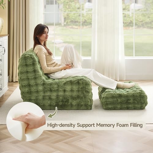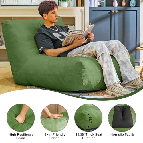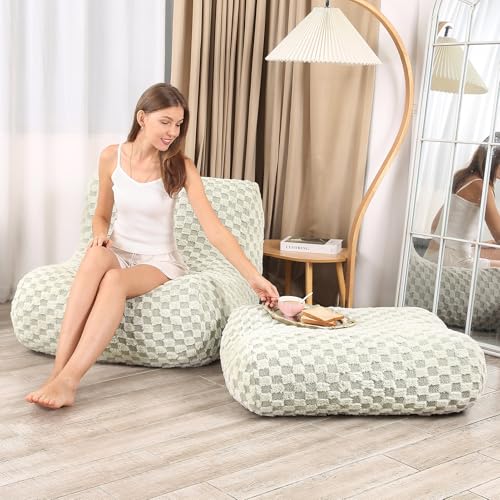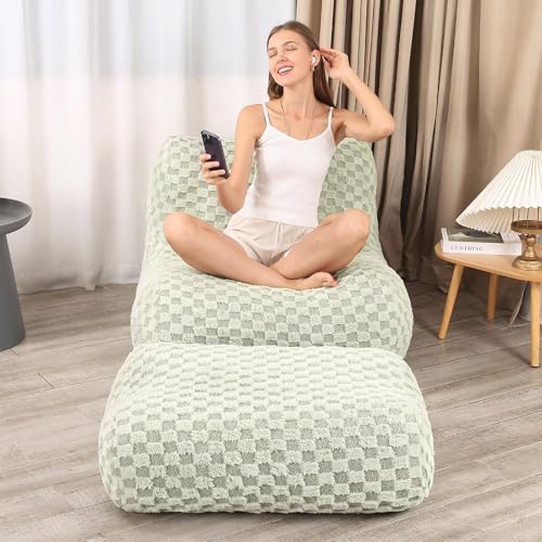 Bean Bag Chair with Footstool, Comfy Reading Sofa Chair for Adults, Modern Floor Sofa for Livingroom, Bedroom, Green