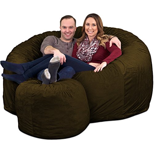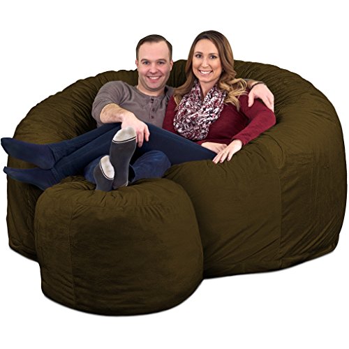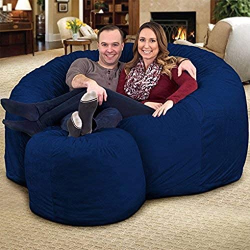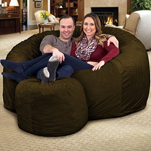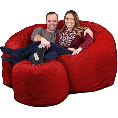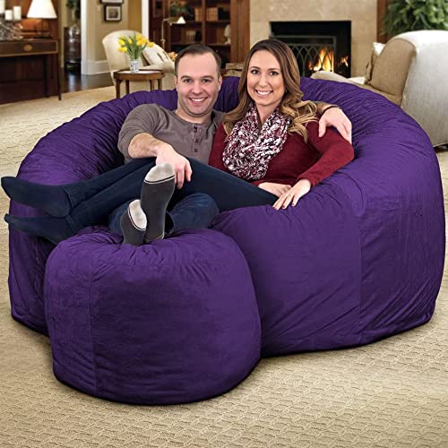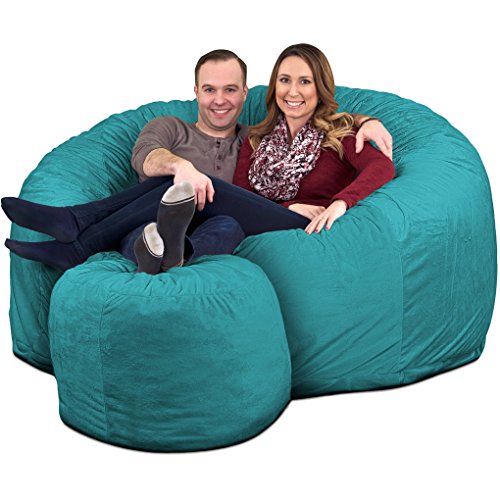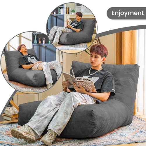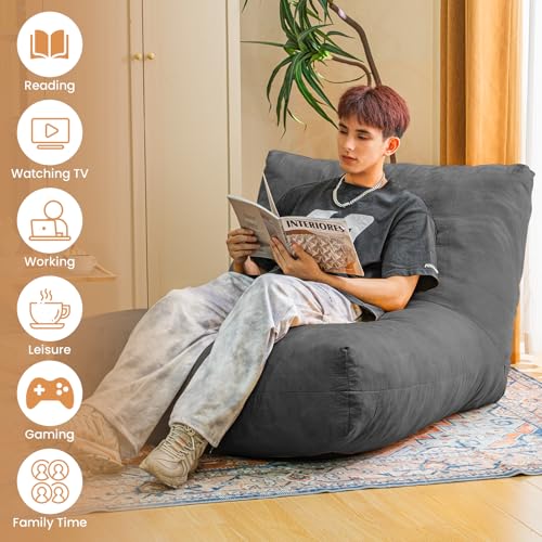 ULTIMATE SACK 6ft Bean Bag Chair & Footstool, Oversize Bean Bag Chair for Adults, Comfy Chair Bean Bag Couch Lounge Sofa Loveseat Furniture | Grey Suede