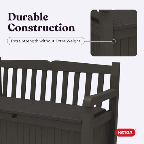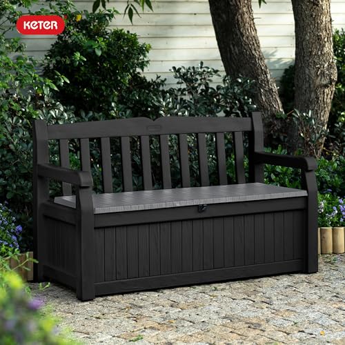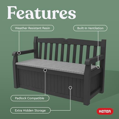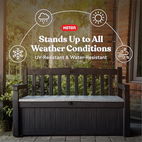 Keter Solana 70 Gallon Storage Bench Deck Box for Patio Storage, Front Porch Decor and Outdoor Seating – Perfect to Store Garden Tools and Pool Floats, Graphite