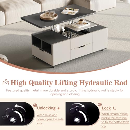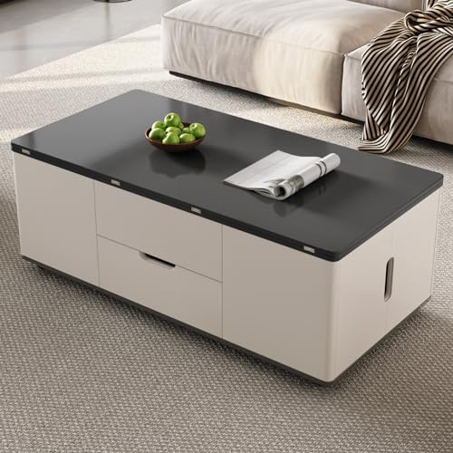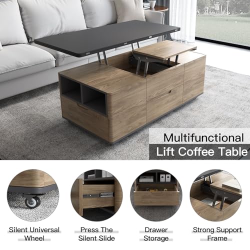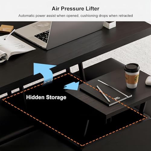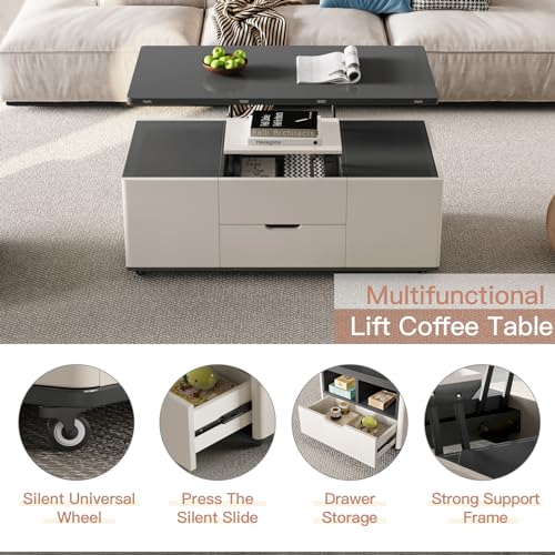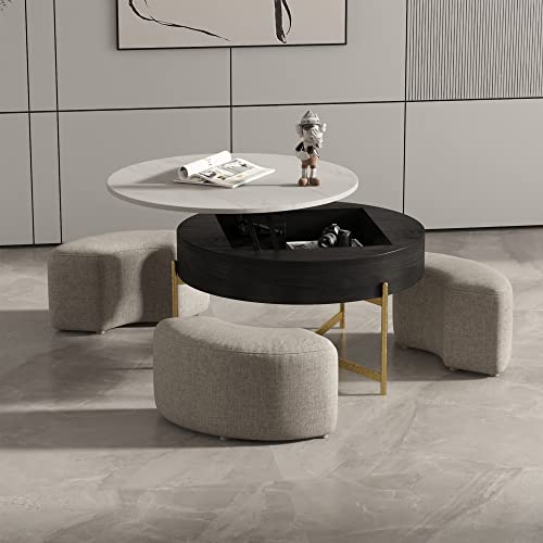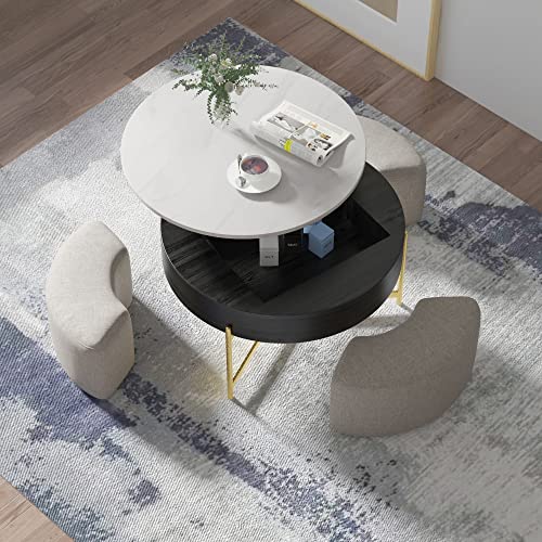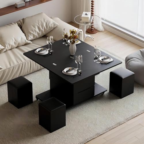 homary Black Lift-Top Coffee Table with Hidden Storage, Multifunctional 3-in-1 Modern Coffee Table with 4 Stools and Lockable Wheels for Living Room (Black)