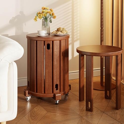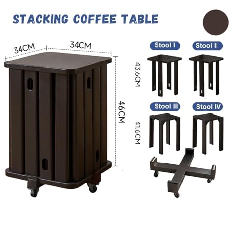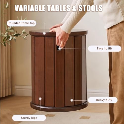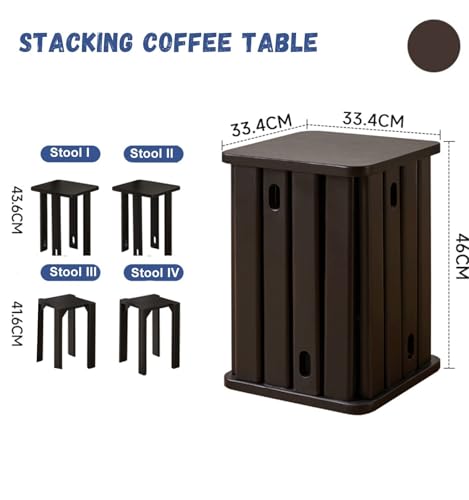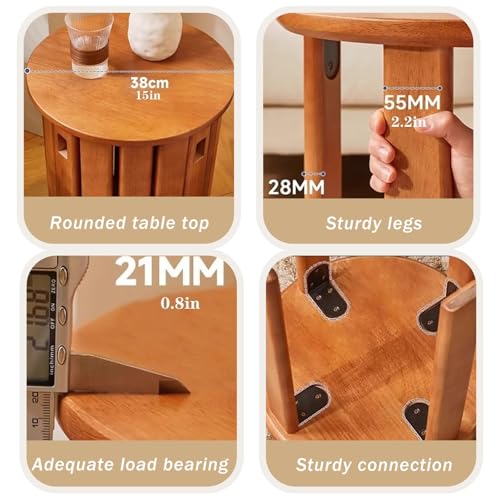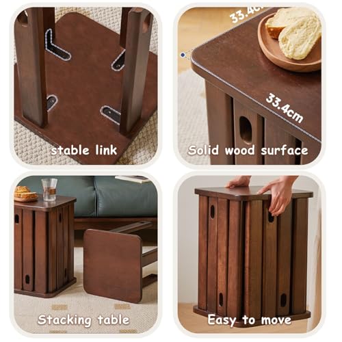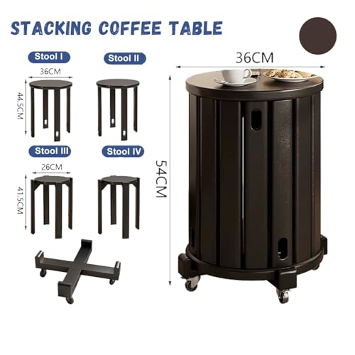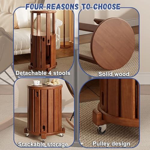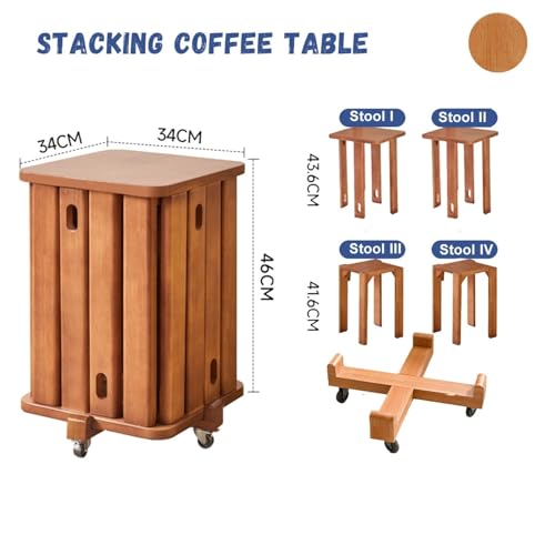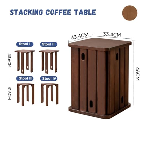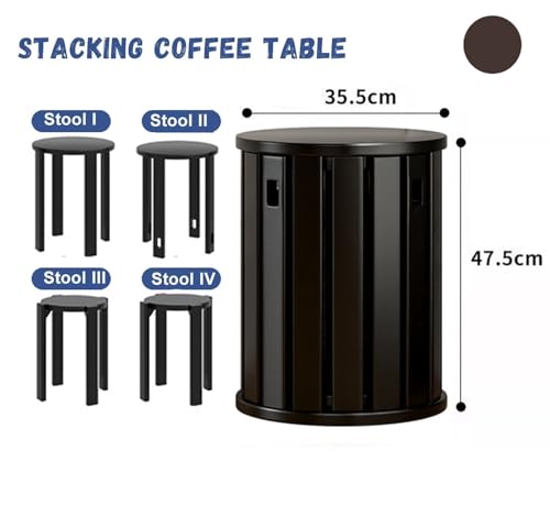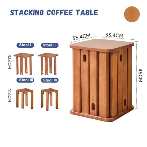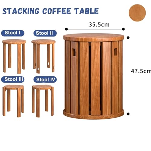Stackable Stools Set of 4 | Round Side Table & Wooden Nesting Coffee Tables for Living Room | Space-Saving End Table for Bedroom & Small Spaces | Wood Modern Nightstand Stacking Stool No Installation(