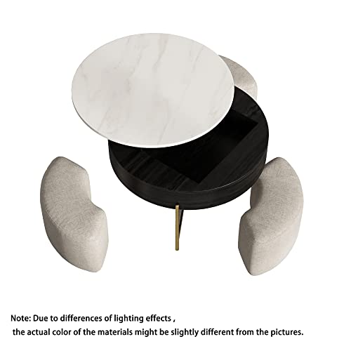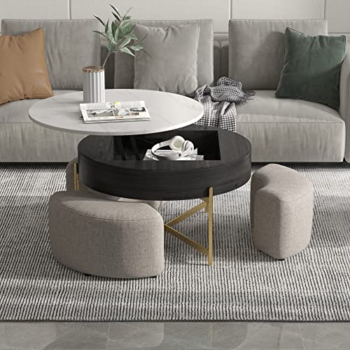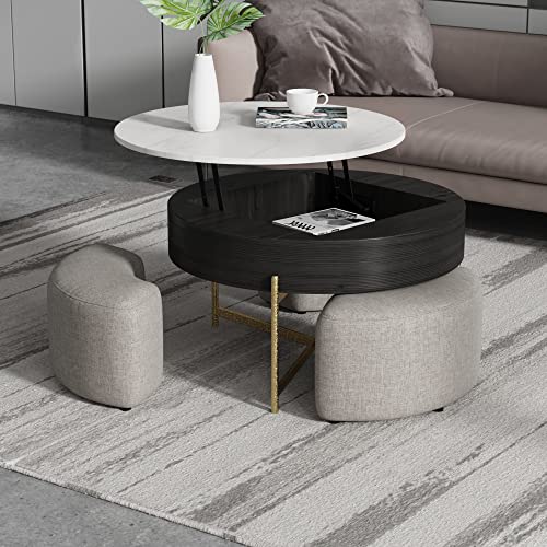 Lift Top Round Coffee Table with Stools, Black Table with Hidden Storage Compartment, Nesting Coffee Table Set for Living Room, Home, Office