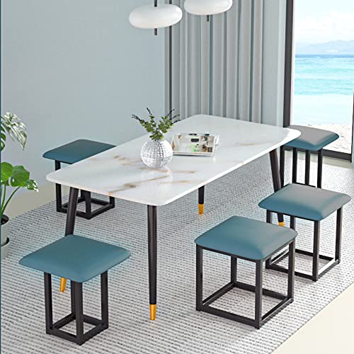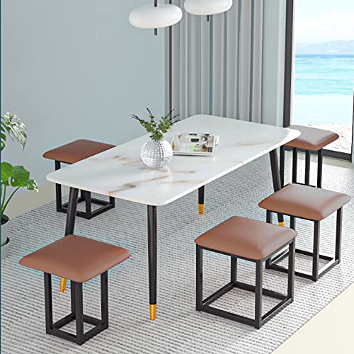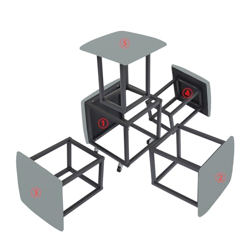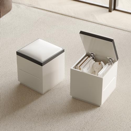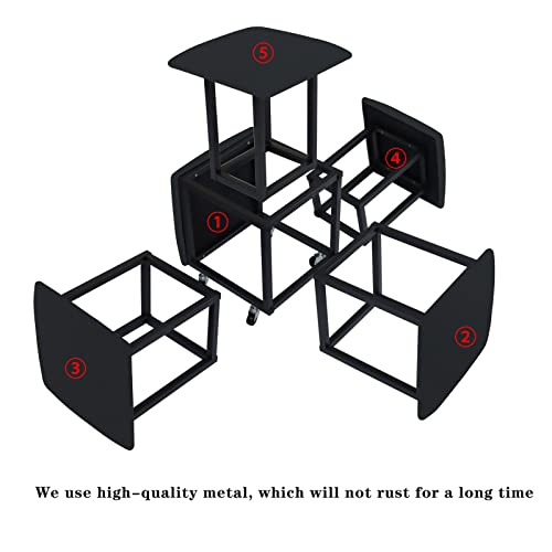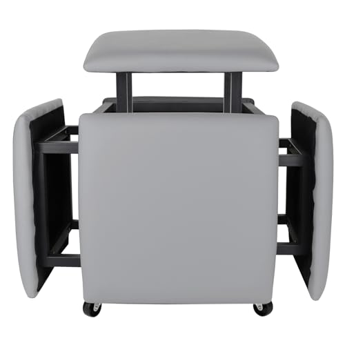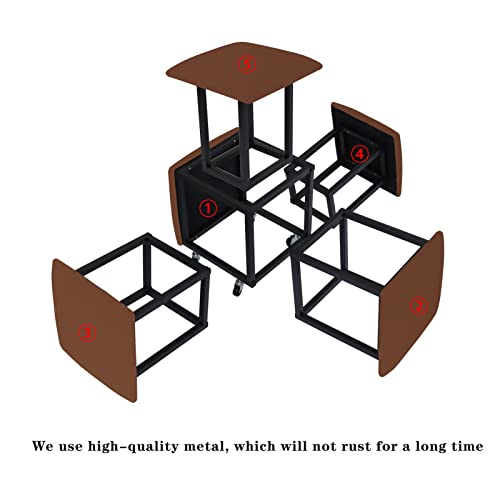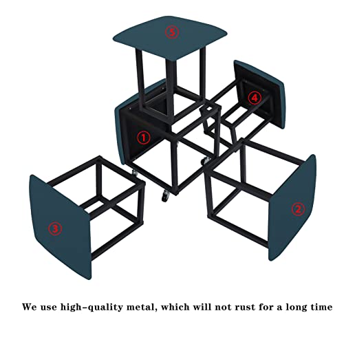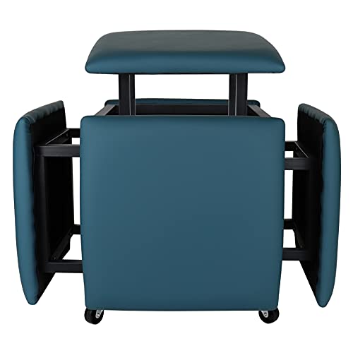 5 in 1 Nesting Ottoman Cube Chair, Stackable Stools, Leather Square Ottoman Bench, Foot Stool with Wheels for Living Room,Dining Room 15.75x15.75x16.54 inches