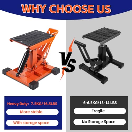 Adjustable Dirt Bike Stand Lift Heavy-Duty Motorcycle Jack Stand with Tool Trays – Powersports Stand for Dirtbike, ATV, Motorcycle -Hoist Table for Dirt Pit Bike Repair, Maintenance-1000LBS Capacity